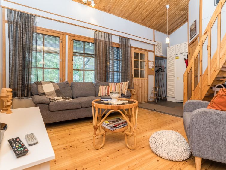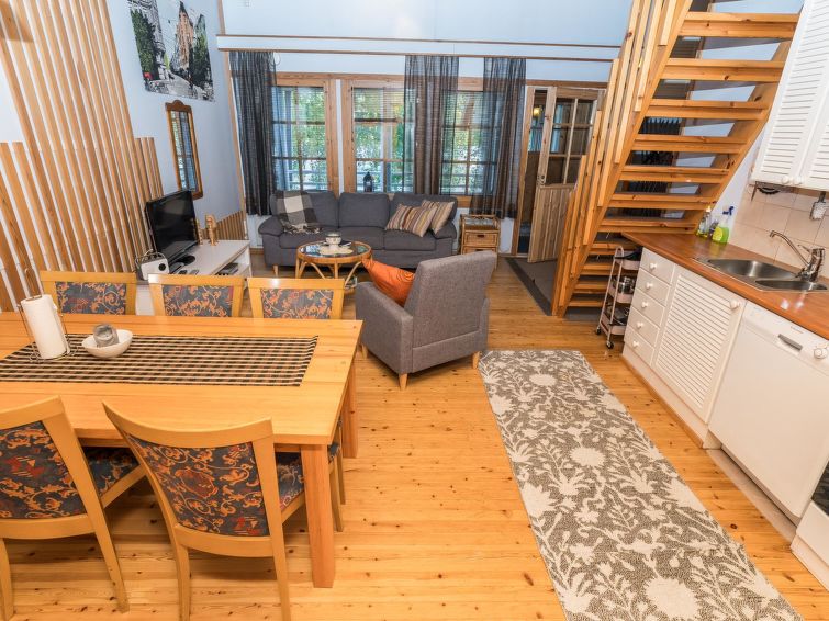 Row house situated on Lake Talvijärvi. Other row houses in the area. Attn. On the contrary to the photos there isn't any television set on the loft.