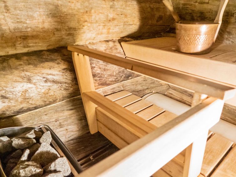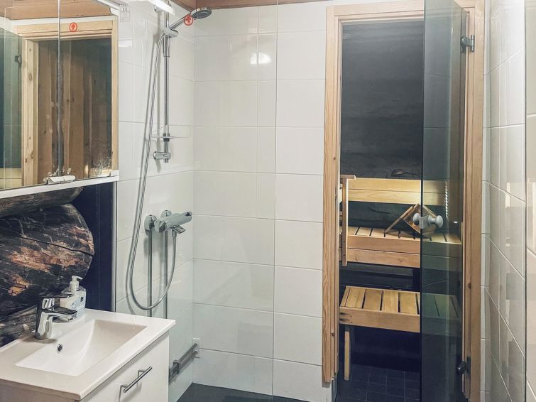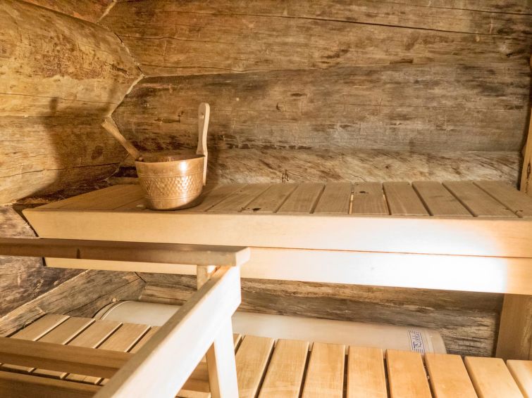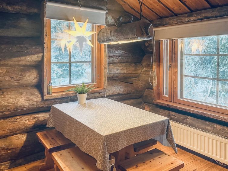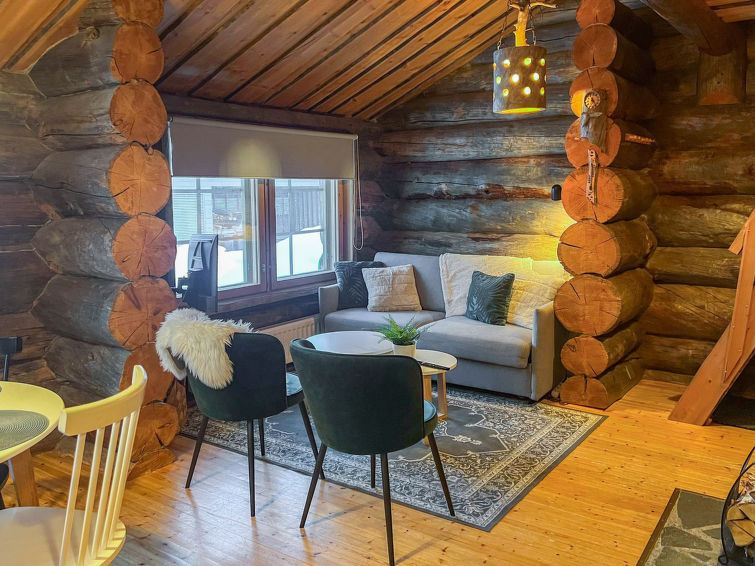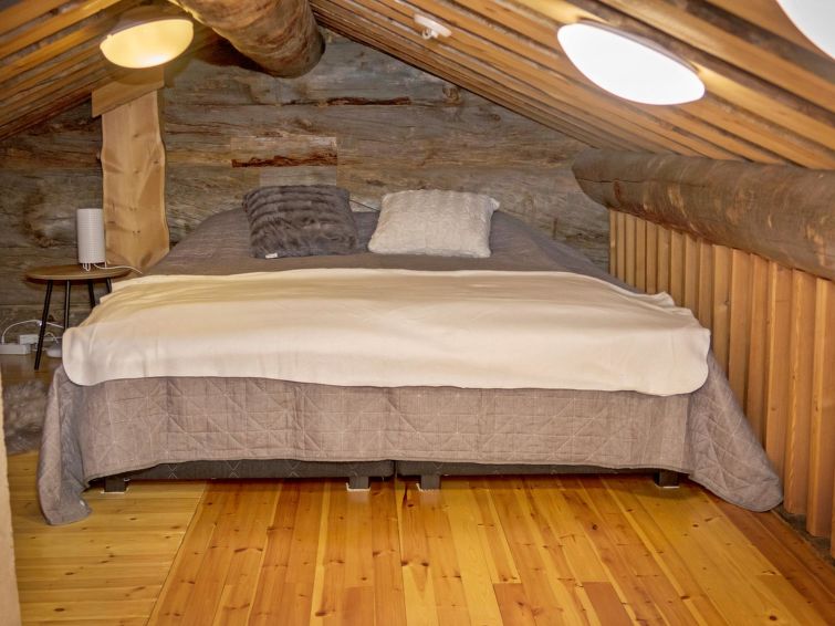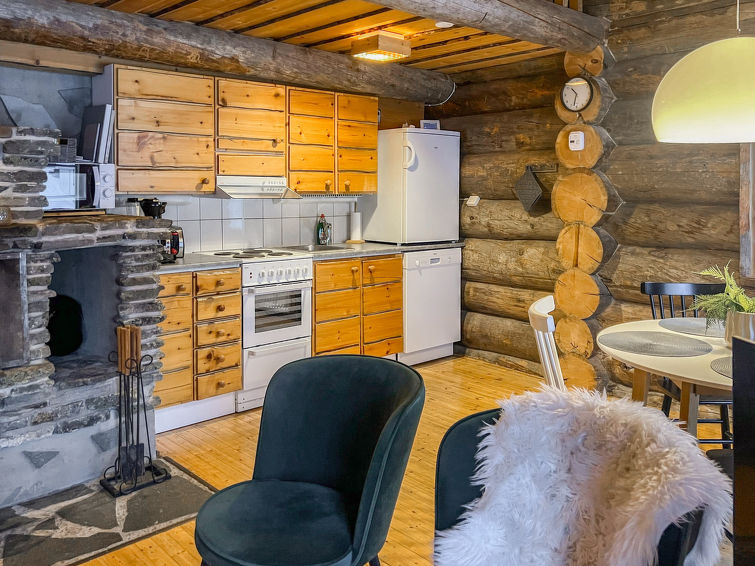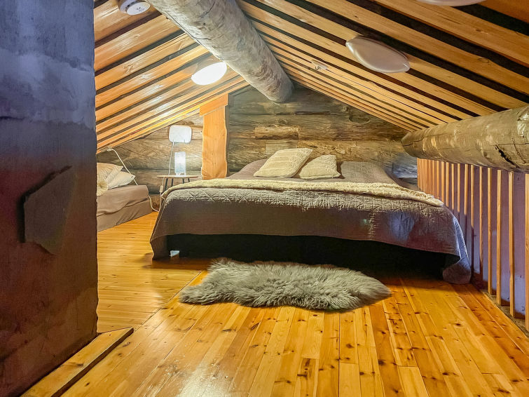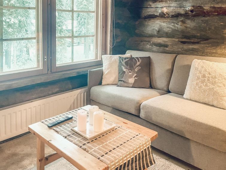 27 km to the north from Kuusamo, Vuosseli (East-Ruka) 900 m. Apartment in a kelo log-made semi-detached house, built in 1996. Loft: 2 beds, living room/kitchen: spreadable sofa bed, electric sauna. The nearest grocery store is K-Market RukaValley, which is open during December-April. At other time the nearest grocery store is in Ruka village, distance 4,9 km.