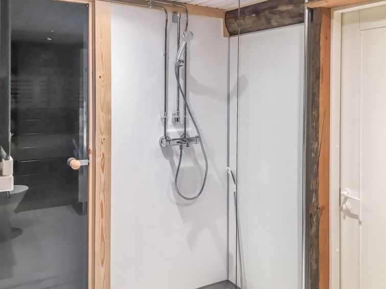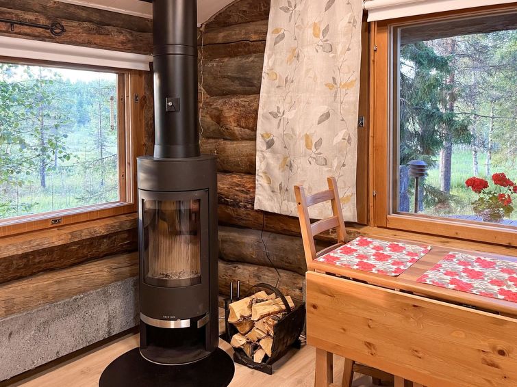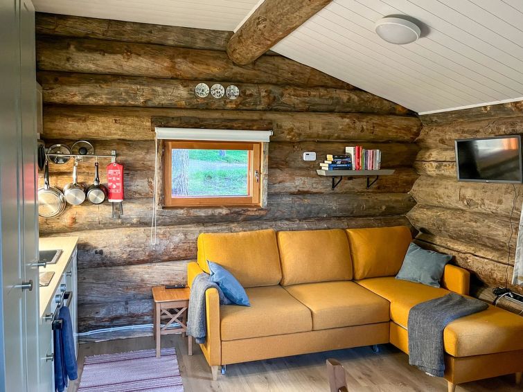The cottage has a kitchenette/living room with a sofa bed and an open fireplace. Sauna (electric heater) and washroom/toilet have been renovated at the end of 2023. An open porch.