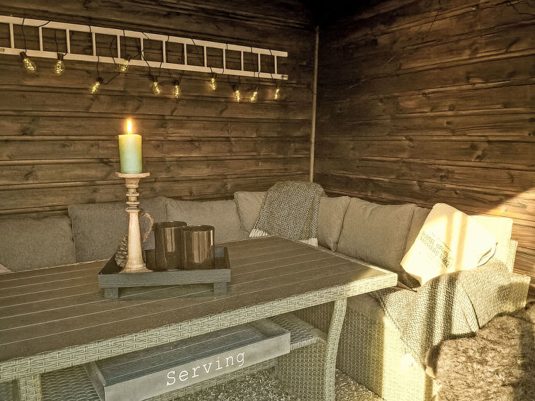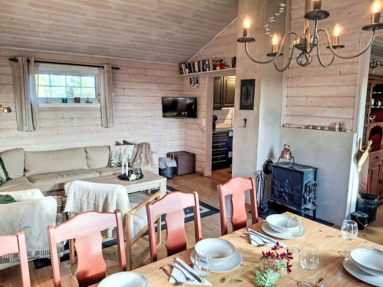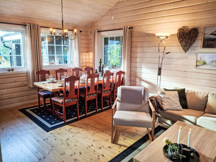 "Kennethbu (SOW059)", 5 rom hus 91 m2 på 2 etasjer. Koseligt møbler: stue/spisestue med, vedovn, spisebord, satelit-TV og DVD. Utgang til terrassen. Stue med, vedovn, satelit-TV og DVD. 1 rom med, 1 dobbeltseng (140 cm, lengde 200 cm). 1 rom med, 3 sovemuligheter (120 cm, lengde 200 cm). Åpent kjøkken (ovn, 4 keramiske kokeplater, mikrobølgeovn, frys, elektrisk kaffemaskin). Dusj, sep. WC. El-oppvarming. øverste etasje: (bratt trapp) stue med, satelit-TV og DVD. 1 rom med, 1 x 2 køysenger (75 cm, lengde 200 cm). Fasiliteter: vaskemaskin. Internett (trådløs LAN [WLAN], ekstra). Vennligst merk: røykfritt hus. Max kjæledyr/små hunder tillatt 2 kjæledyr/små hunder tillatt.