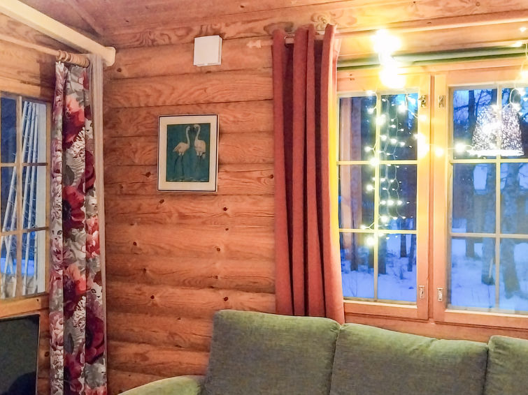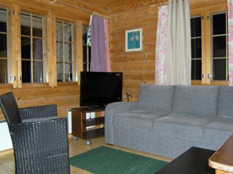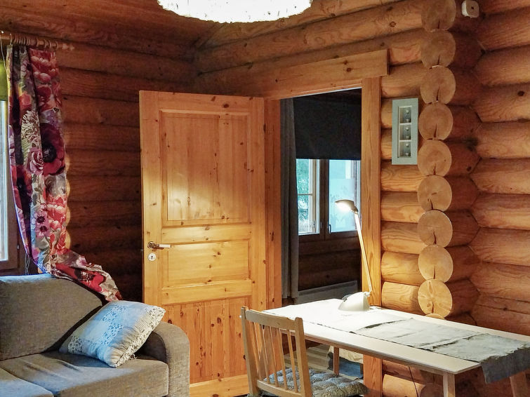 Log cottage 1990, renovated in 2016, kitchen-living room with sofa bed, sleeping alcove double bed (120 cm wide), sleeping alcove 1 bed (bed width 90 cm), washroom, sauna (electric stove), dressing room, terrace.
