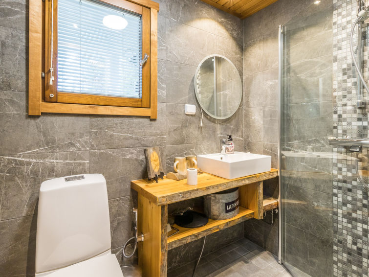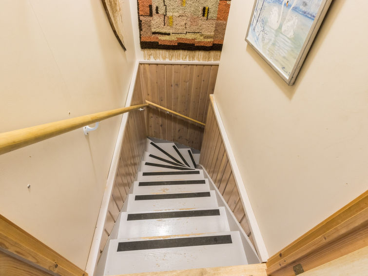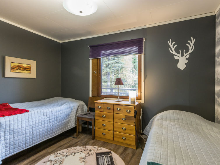 40 km north of Kolari, lake Äkäslompolo 700 m, river Kesänkijoki 300 m, lake Kesänkijärvi 1,5 km, swimming beach 1,3 km. Wooden house 1987. Kitchen, 3 x bedroom, one bedroom with a double bed and two with 2 separate beds. Downstairs fireplace, sauna (electric heated) and shower also downstairs. Separate toilet. Washroom and sauna renovated in 2020 and bed rooms in 2022.