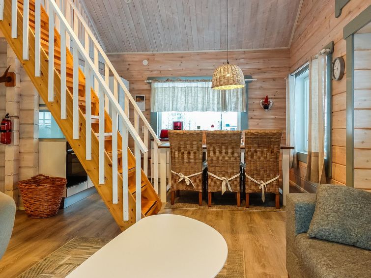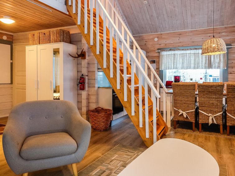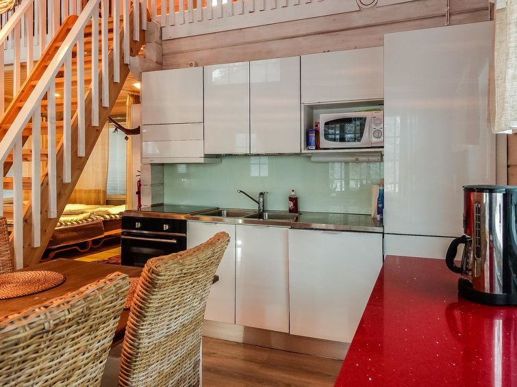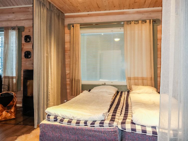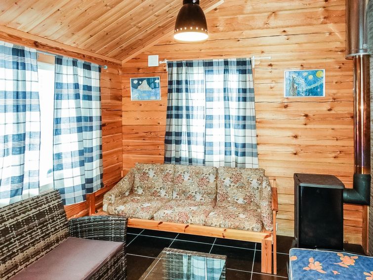 75 km to the east from Kemijärvi, in Sallatunturi tourist center in peaceful district by the pond Keselmälampi, no own beach, walkway between cabin and the beach.