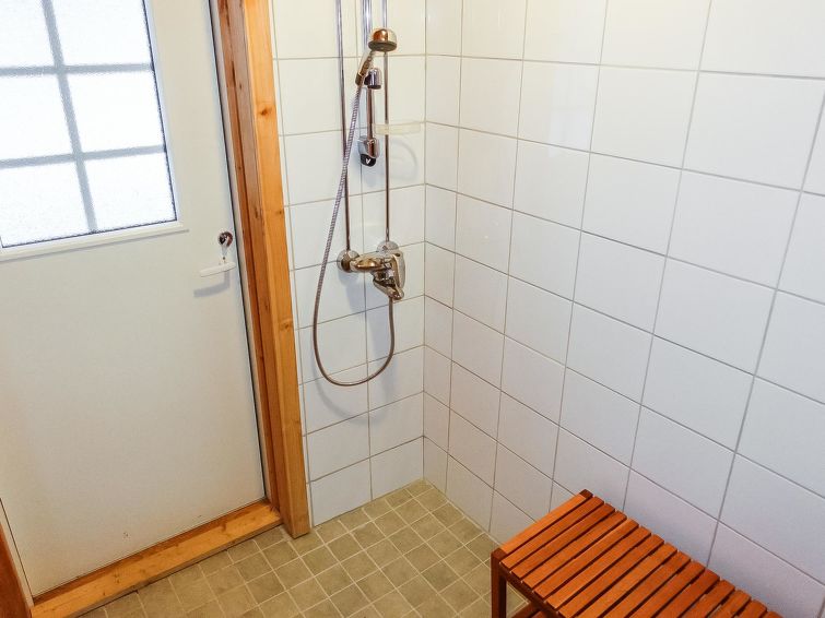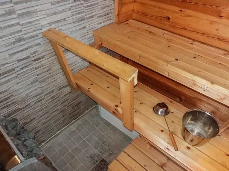 Separate sauna building with steam room (electric sauna stove), shower area and living area. Sauna building has electricity, wood stove in the living area.