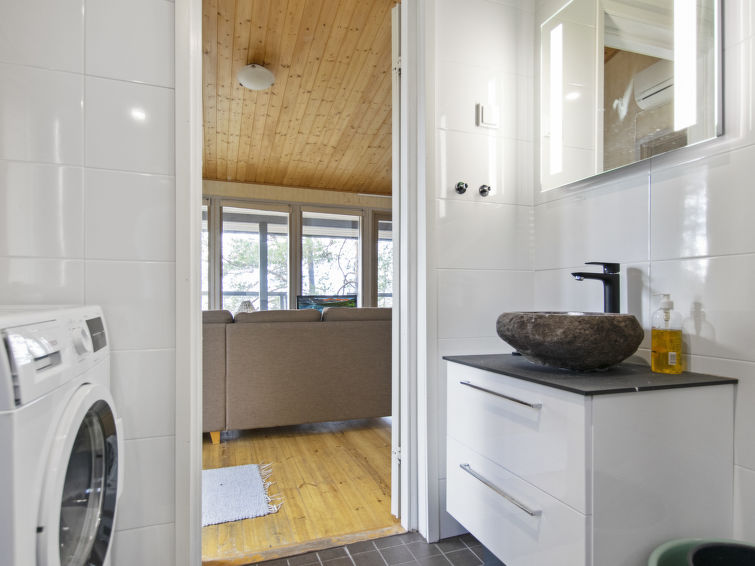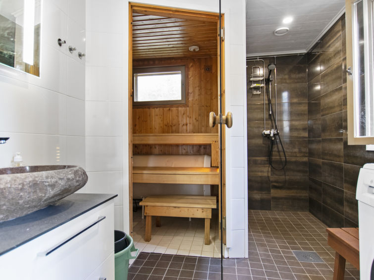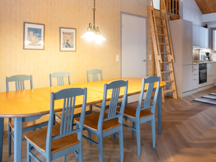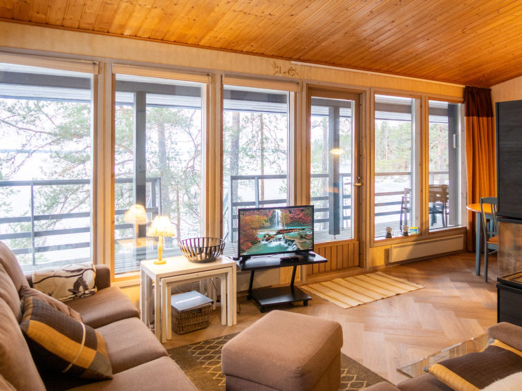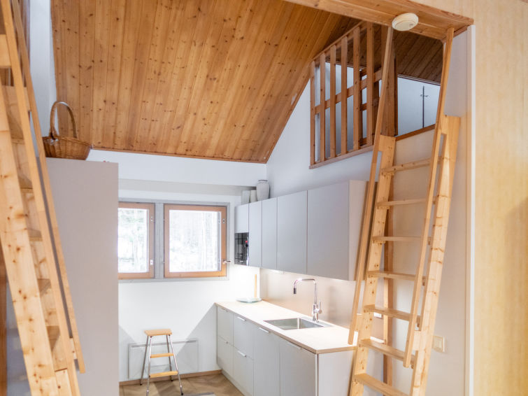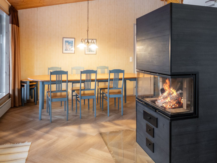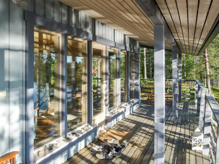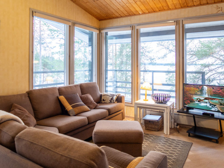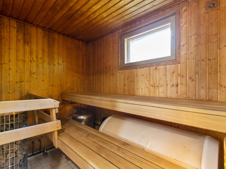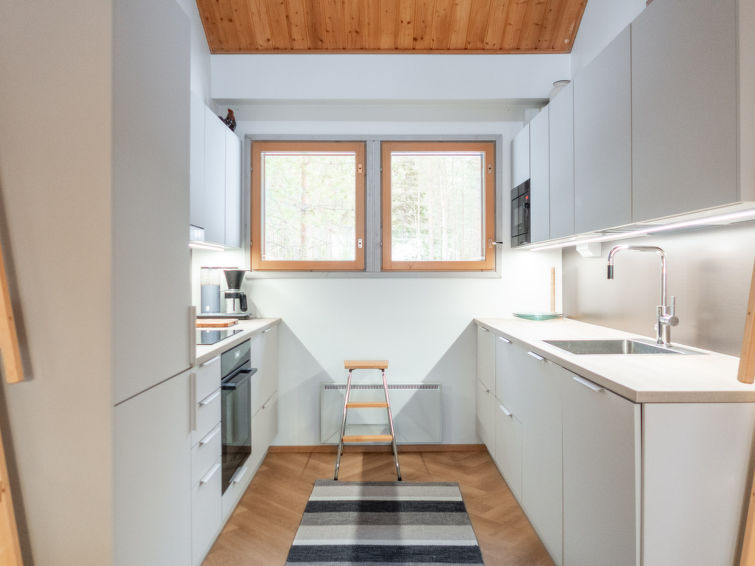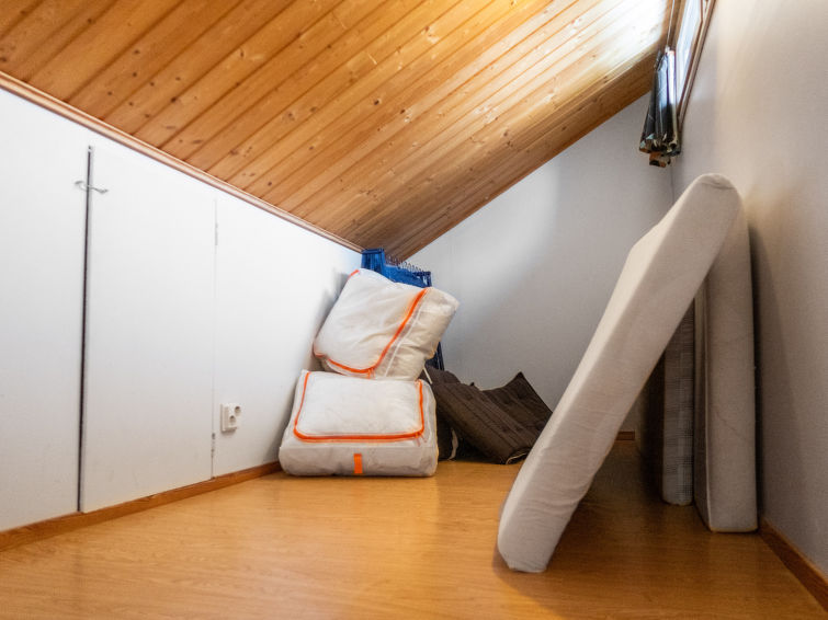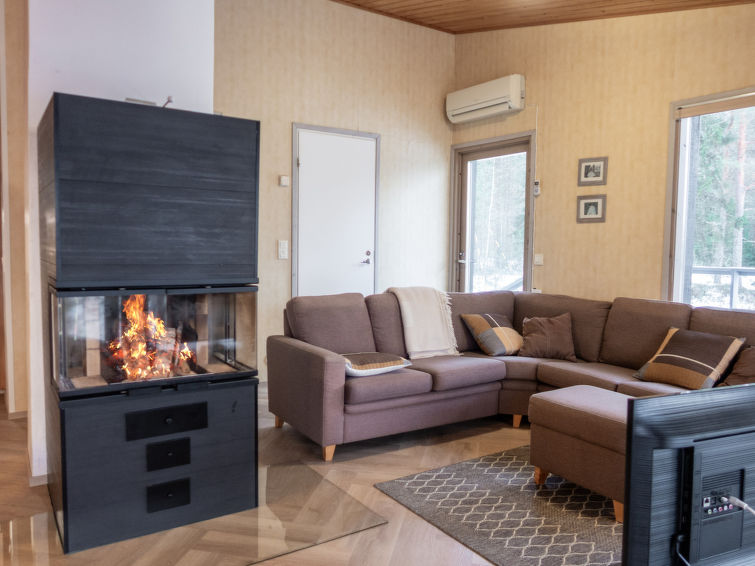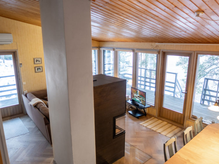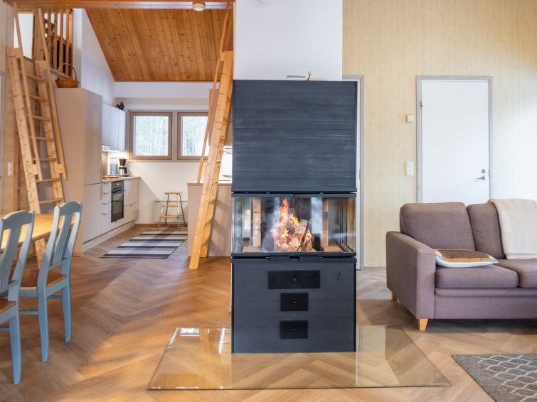 Surface area of 80 m², with a kitchen, a dining area, a living room with a wonderful panoramic view of the lake Nuasjärvi. Two bedrooms with double beds (if needes, gets to separate beds), toilet, shower, sauna (electric stove). Two small sleeping loft with mattresses total for 4. Sleeping loft: access by steep ladder.