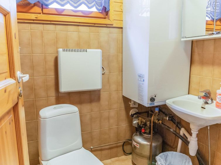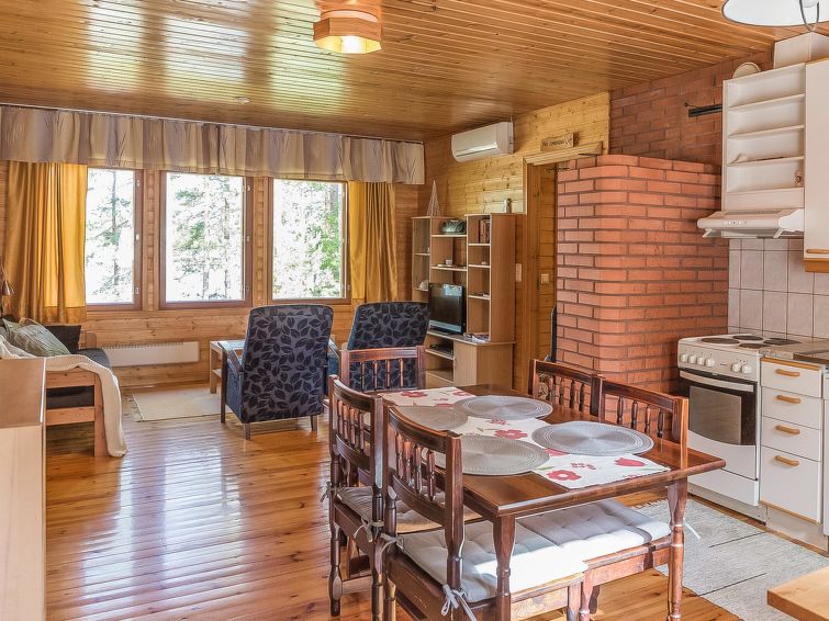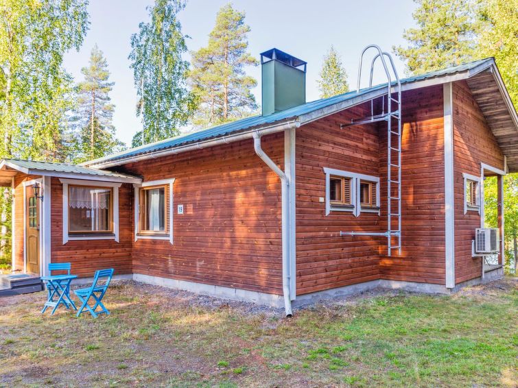 Wooden building. 1998, living room/ kitchen 2 extra beds, bedroom with double bed, bedroom 2 beds, washroom, toilet, sauna, vestibule, porch. Air source heat pump.