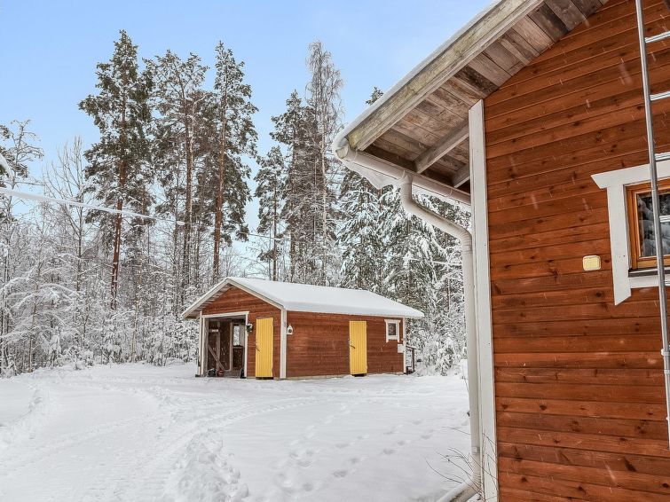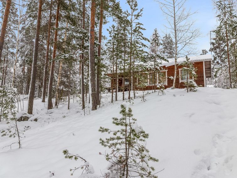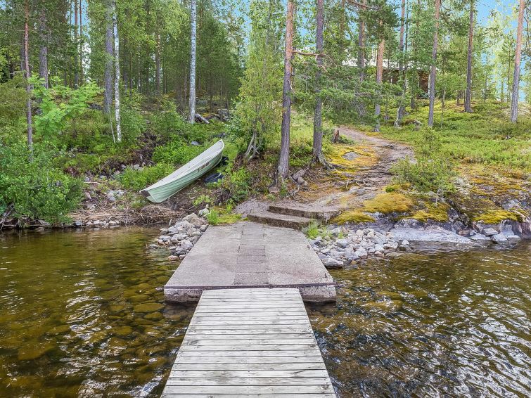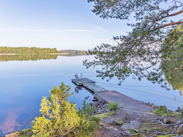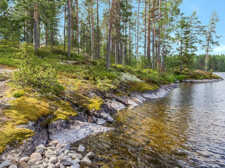 52 km north-east of Heinola, Lahnavesi -lake 25 m (length 10 km, width 1 km), deepening, hard sand/stone bottom, pier and rowing boat.