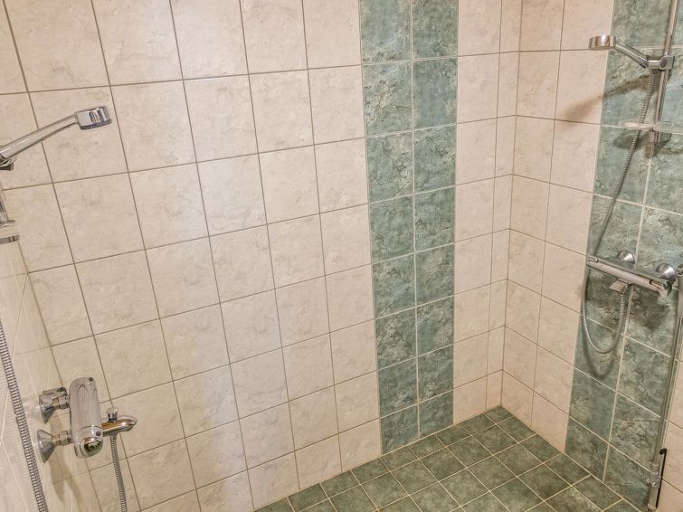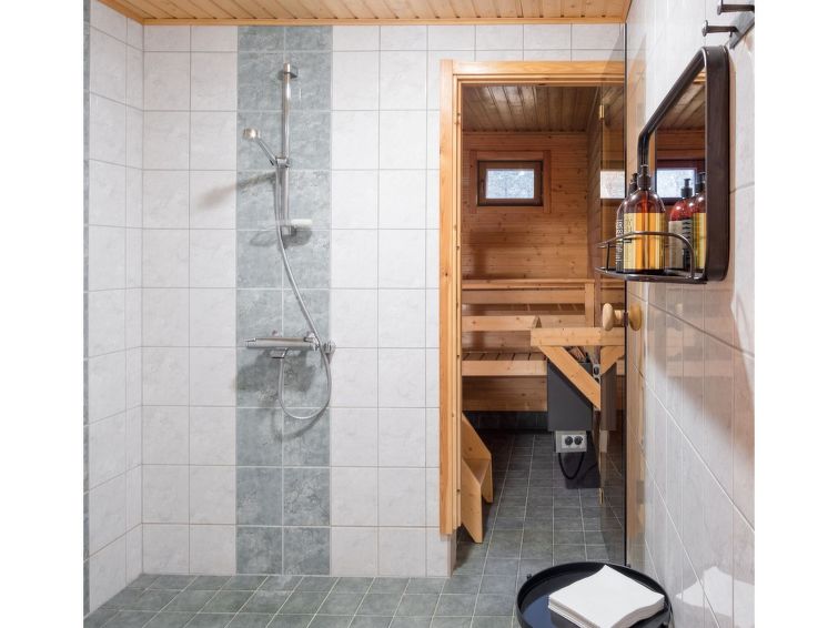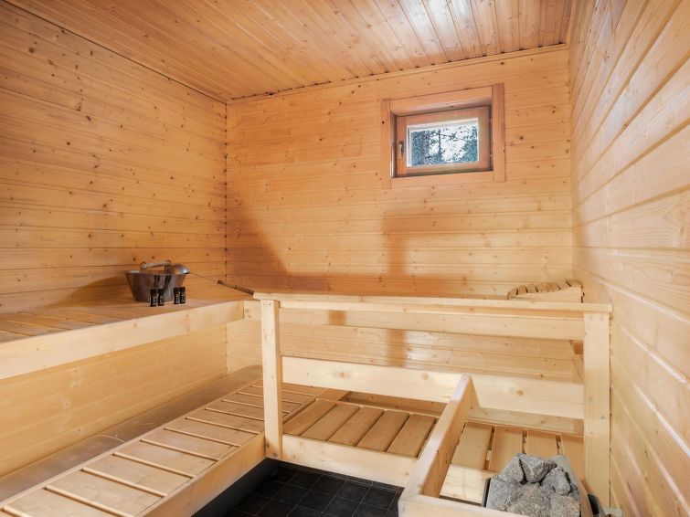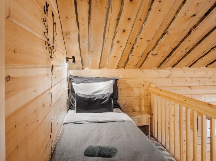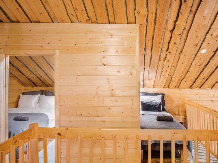 Kitchen / living room with 1 bed, bedroom with 2 beds, loft bedroom with 2 beds (one of the beds is 140 cm wide), loft with 1 single bed. Sauna, bathroom, 2 separate toilets (another in loft), terrace and a warm storage.