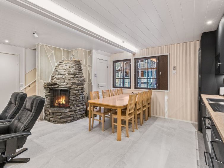 Kevinlevi is a spacious cabin in a peaceful area. An illuminated ski trail runs right next to the house. There is a park forest on the other side of the cabin.