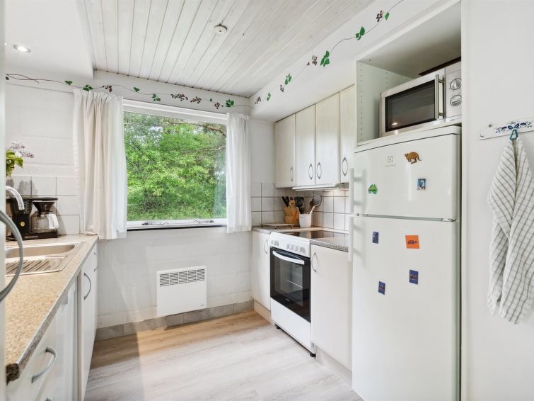 "Keyla" - 3.2km from the sea in Western Jutland", 3 rom hus 90 m2. Passer for 6 voksne + 1 barn. Stue med, TV og radio. 1 rom med, 1 dobbeltseng. 1 rom med 2 senger. 1 rom med 2 senger. Kjøkken (stekeovn, oppvaskmaskin, 4 keramiske kokeplater, mikrobølgeovn, frys). Dusj/WC. Fasiliteter: høy barnestol barneseng (ekstra). Internett (trådløs LAN [WLAN]). Vennligst merk: røykfri bolig. Max kjæledyr / hund tillatt 1 kjæledyr / hund tillatt.