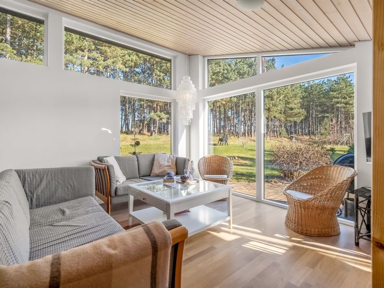 Enmannsbolig, bygget i 1979. 50 m fra sjøen. Privat: uberørt tomt 2'016 m2. Grill. I huset: badstu, vaskemaskin, tørketrommel. Parkering ved hbrukt. Daglivarehandel 3.5 km. Golfbane 3 km. Eieren godtar ikke noen ungdomsgrupper.