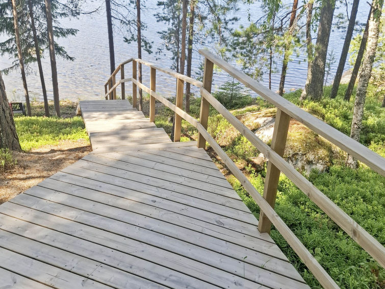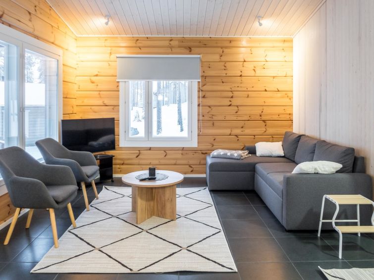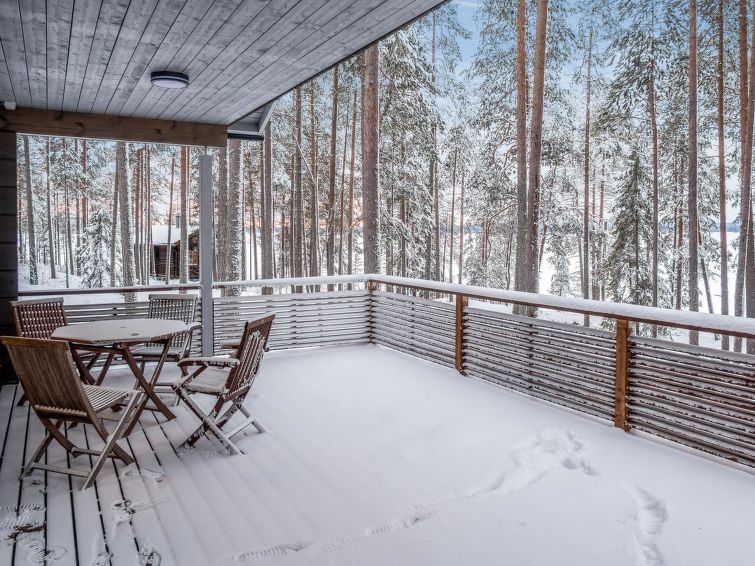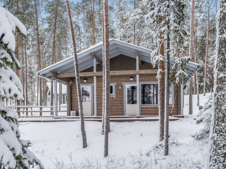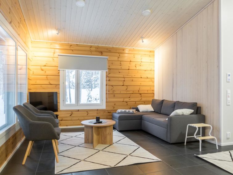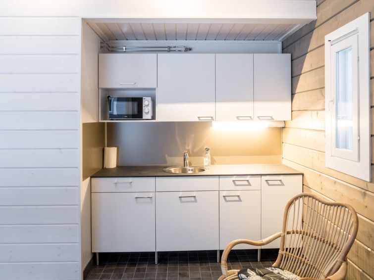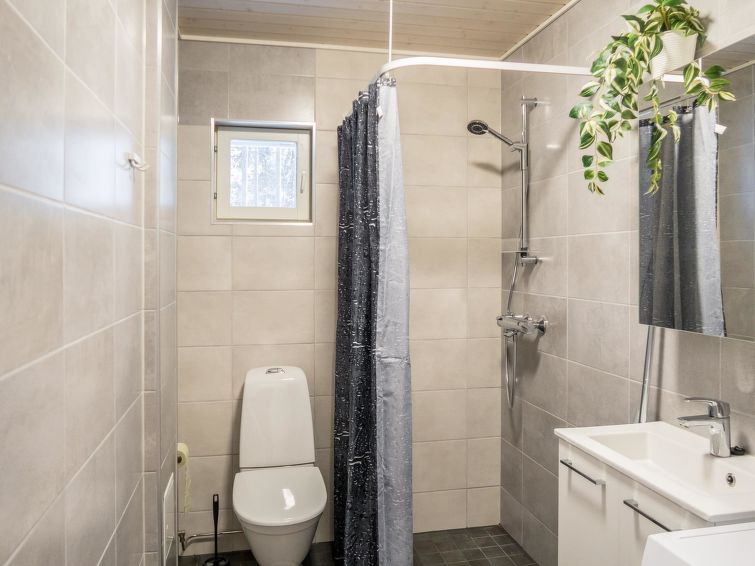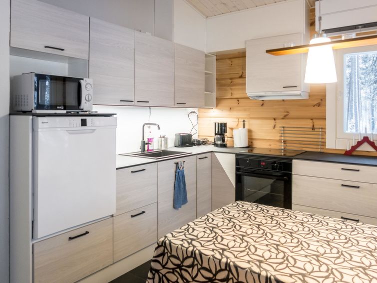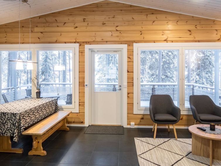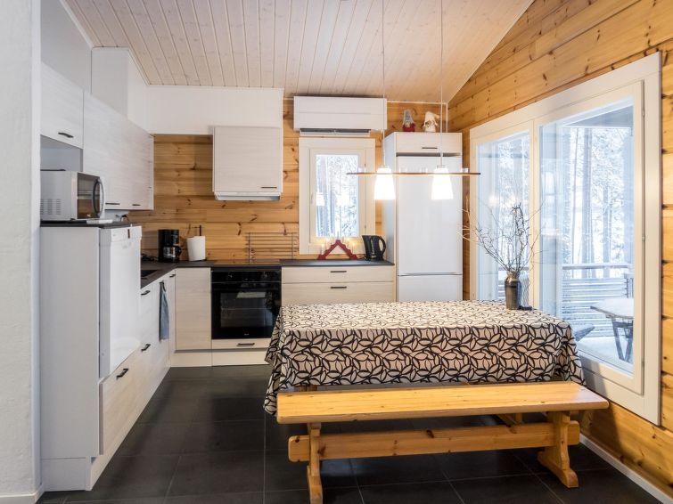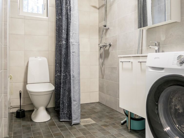 The area of the main house is 62 m², with a spacious kitchen/living room with large windows overlooking the lake and the forest landscape. Dining set for 6 in the kitchen. Two separate bedrooms, one with a double bed and wardrobes. In the second bedroom, separate beds for 2. The living room has a sofa bed for 1-2 guests. Shower/toilet, washing machine and drying rack in the washroom. Entrance hall with wardrobes, access from the back to a large terrace with garden furniture and a grill available in the summer. In the main cabin, underfloor heating, air-to-air heat pump and ventilation unit.