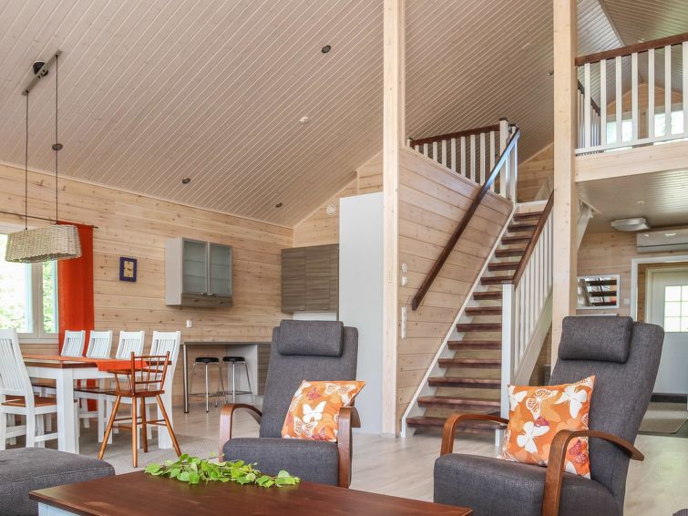 Large terrace, cooking hut, air source heat pump, wireless Internet connection (100 Mt optical fiber). Kielo is a high-quality rental villa for a comfortable holiday. Good terrains for picking berries and mushrooms nearby. There is also plenty of fish in the lake Aitjärvi.