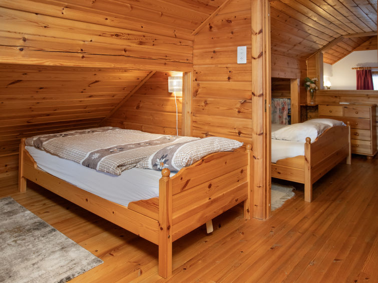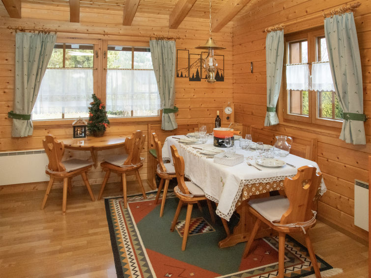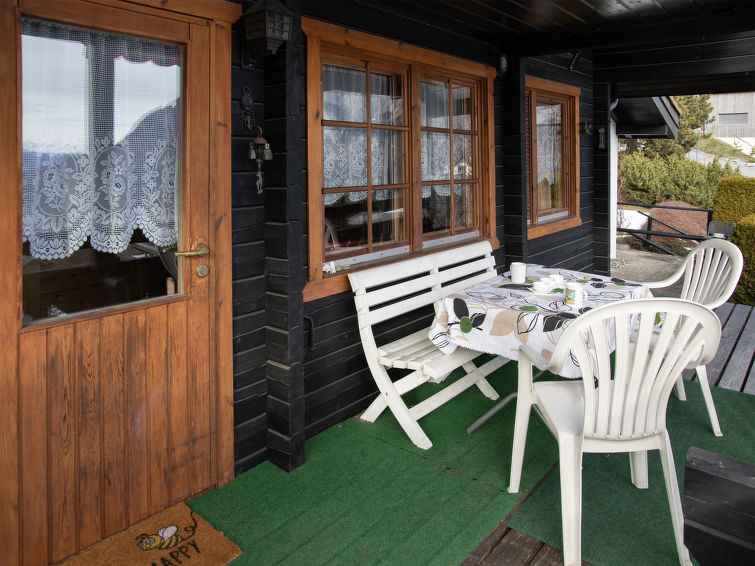 "Kil-Ukru", 3 rom hytte 81 m2 på 2 etasjer. Komfortabelt og koseligt møbler: stue med, vedovn og satelit-TV. Utgang til balkongen. Spisestue. Kjøkkenkrok (stekeovn, oppvaskmaskin). Dusj/WC. Toppetasje: galleri med, 1 dobbeltseng. 1 rom med 3 senger. Terrassemøbler, grill, liggestoler, lager. Vakker utsikt av dalen. Fasiliteter: vaskemaskin. Internett (analog/ISDN, ekstra). Garasje. Vennligst merk: røykfri bolig. Access to the bedroom only via the gallery.