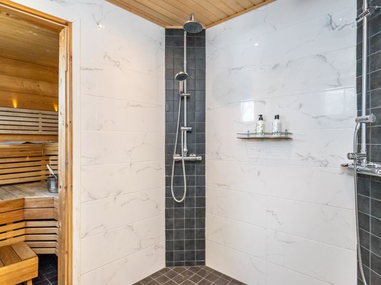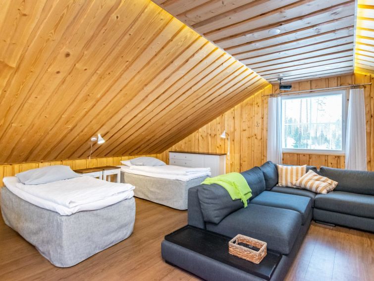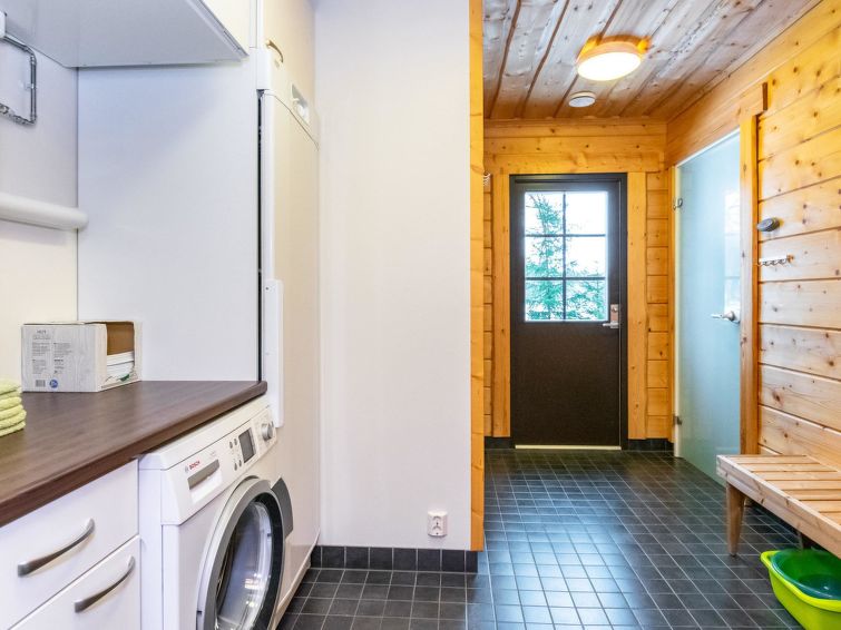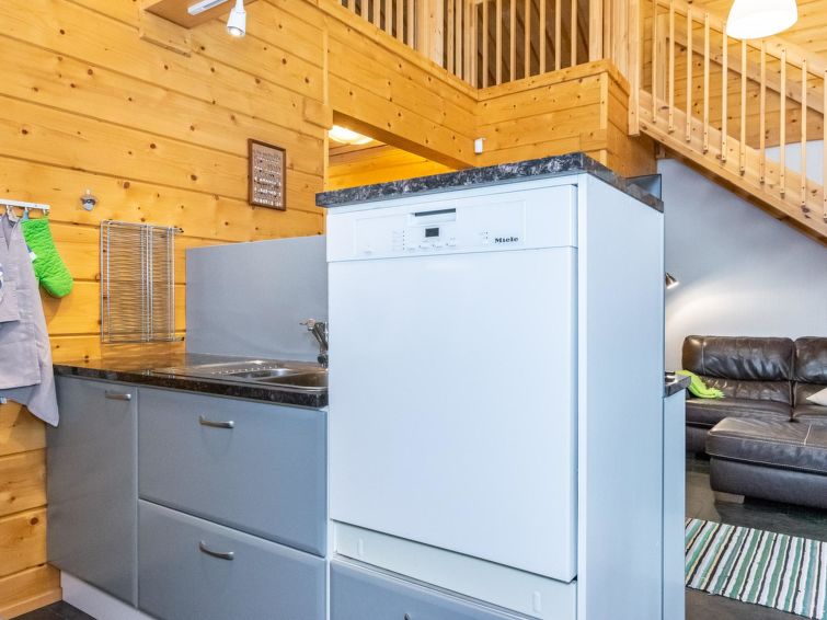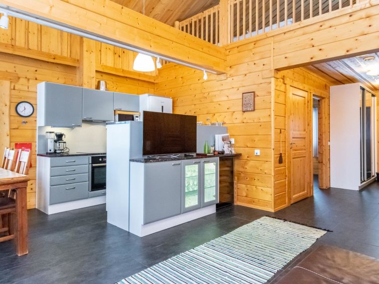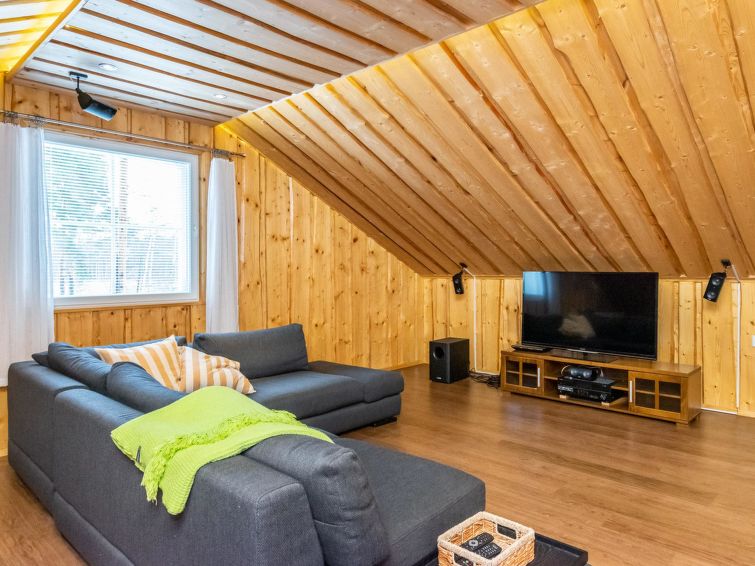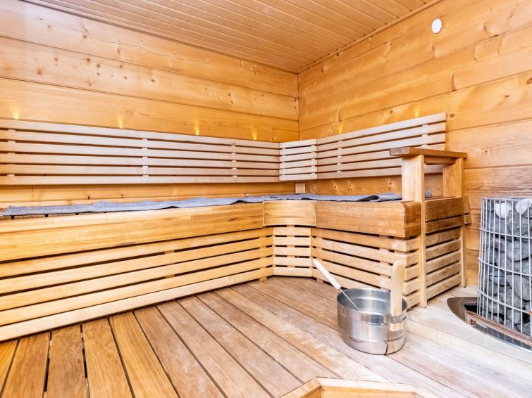 On the ground floor, there is a living room/kitchen, two bedrooms, both with two beds, TV and DVD. Dressing room, bathroom, sauna and WC. Well-equipped kitchen also has a wine cabinet.