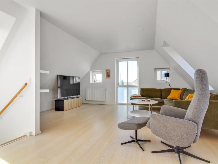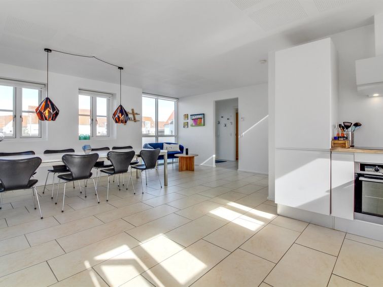 "Kimon" - 600m from the sea in NW Jutland", 3 rom hus 134 m2. Passer for 6 voksne + 1 barn. Stue med, TV. 1 rom med, 1 dobbeltseng. Kjøkken (stekeovn, oppvaskmaskin, 4 keramiske kokeplater, frys). 2 dusjer/WC. øverste etasje: stue med 2 senger. 1 rom med, 1 dobbeltseng. Fasiliteter: høy barnestol. Internett (trådløs LAN [WLAN]). Vennligst merk: røykfri bolig.