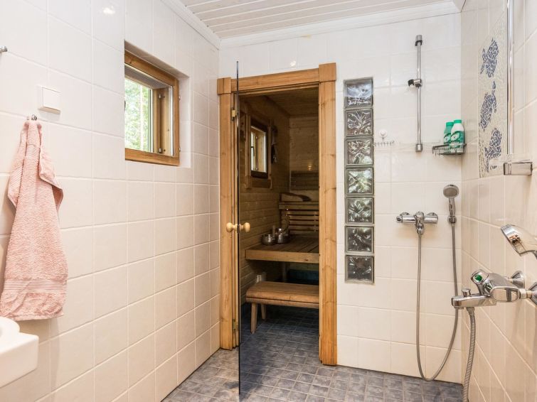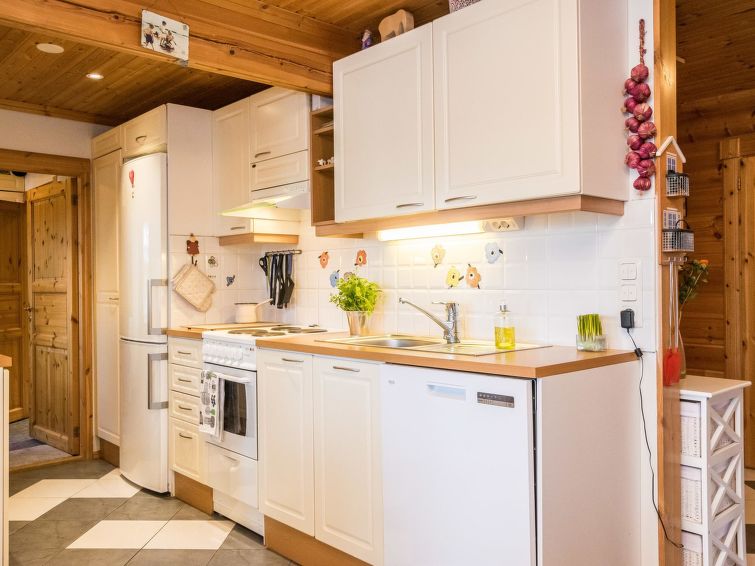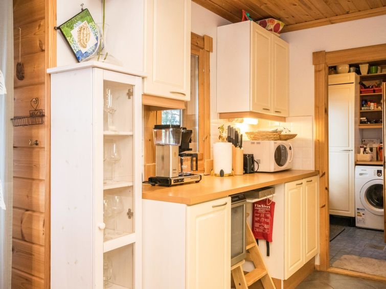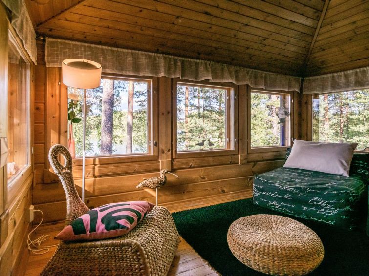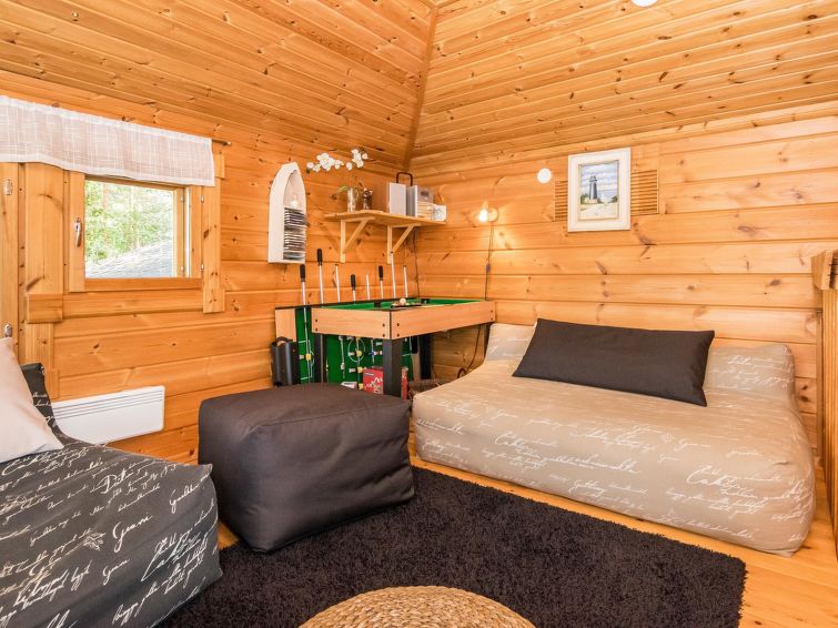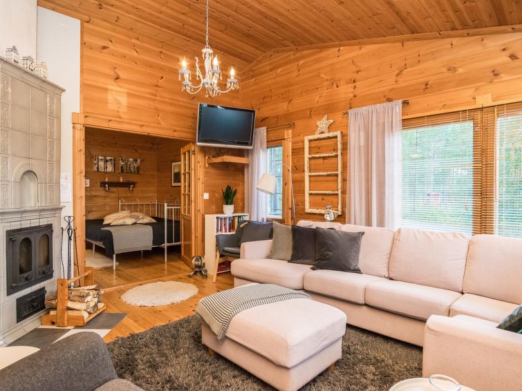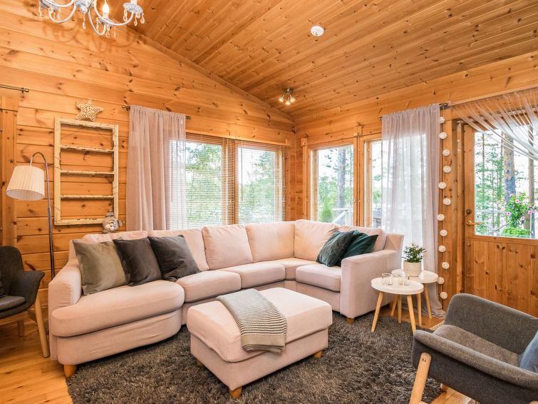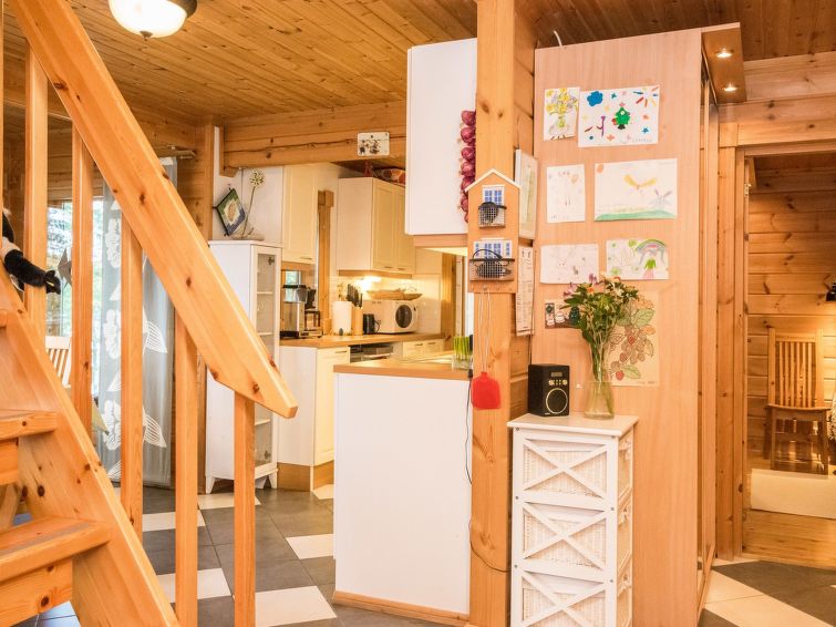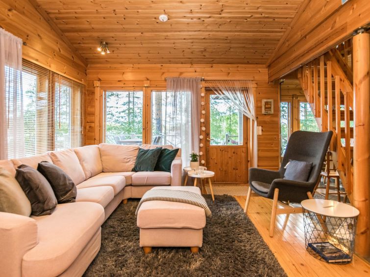 Log chalet 2003, kitchen, living room, 2 bedrooms double bed in each, loft 2 folding beds, washroom, dressing room, sauna (always ready elec. stove), open porch.