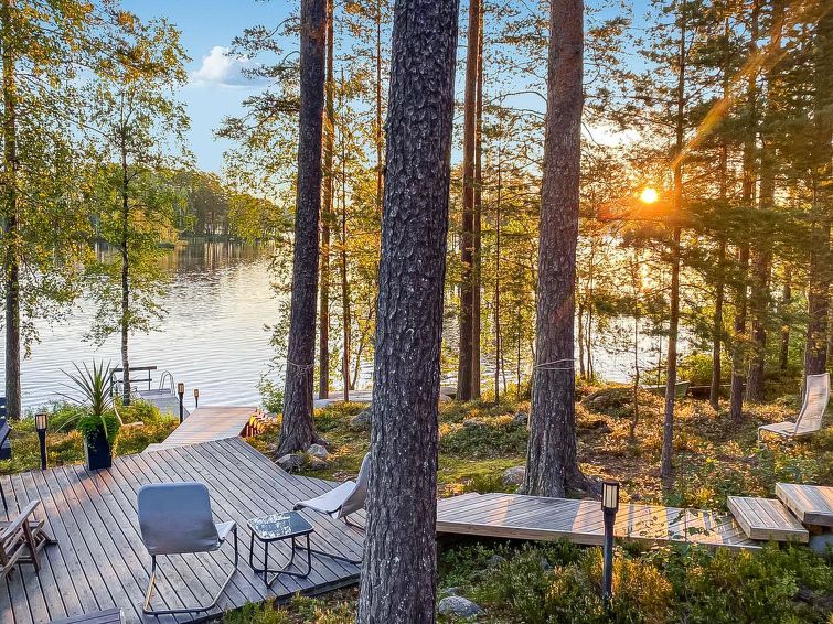 Tastefully furnished cottage. Plot on slope, mainly in natural state. Steps leading to jetty at shore; these are illuminated. For children a playhouse and swing, baby cot. Pets are not allowed but exception can be agreed with the owner.
