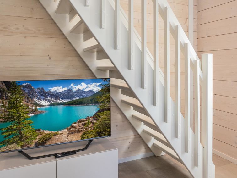 Stylish apartment in semi-detached house by the river Kitkajoki (30 m). Ground floor bedroom and loft, both have 2 beds. In addition, spreadable sofa bed for two in the living room. The destination can therefore accommodate 6 people, and by booking the entire semi-detached house (KitkanVee 1 and 2), a larger group can also be accommodated easily.