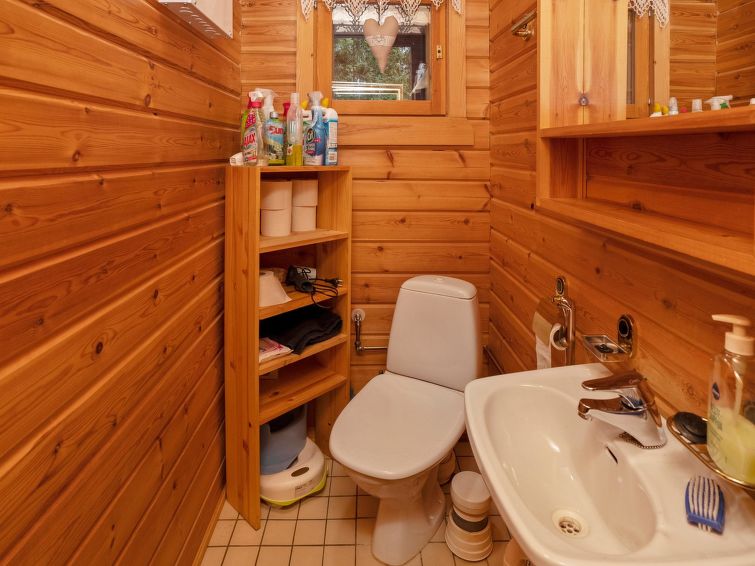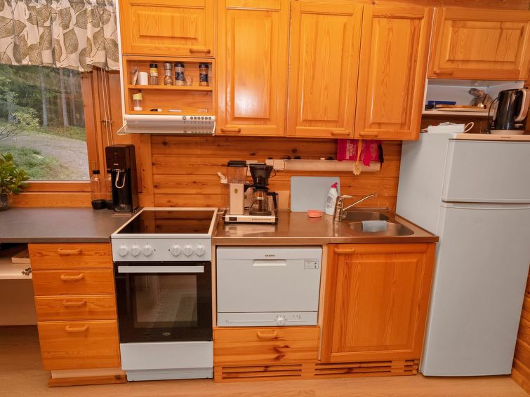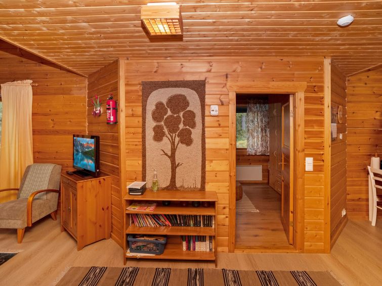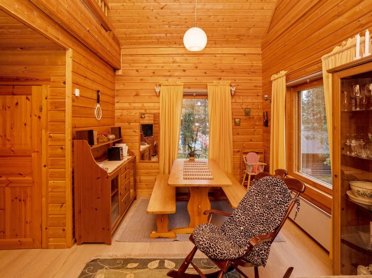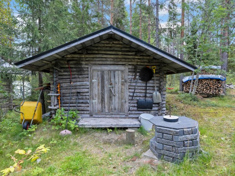 Log cabin built in 1994, kitchen, living-room, downstairs 1 bedroom with double bed, upstairs/sleeping loft with 2 double beds (160 cm and 140 cm wide), 1 bed (80 cm). Wood-fired sauna with bathroom. A grill hut in the yard (available in summer).