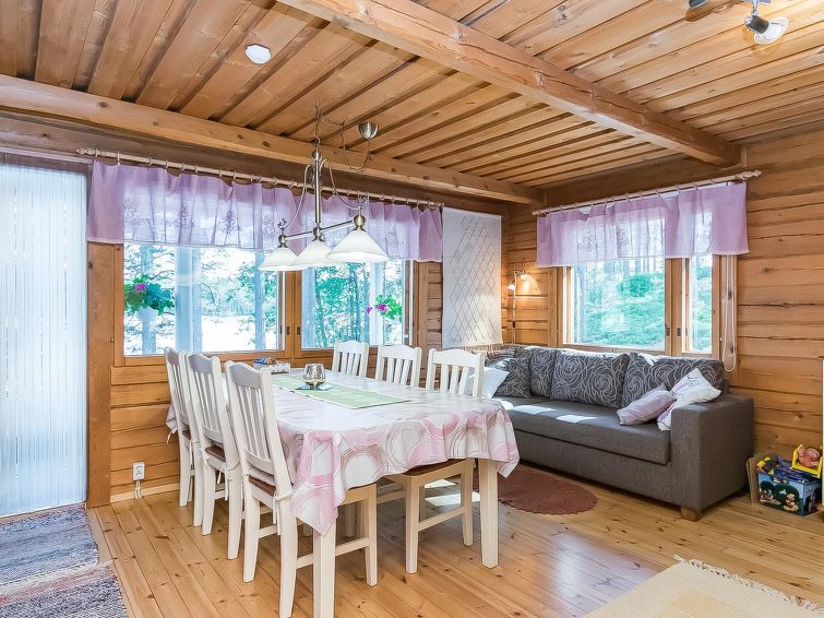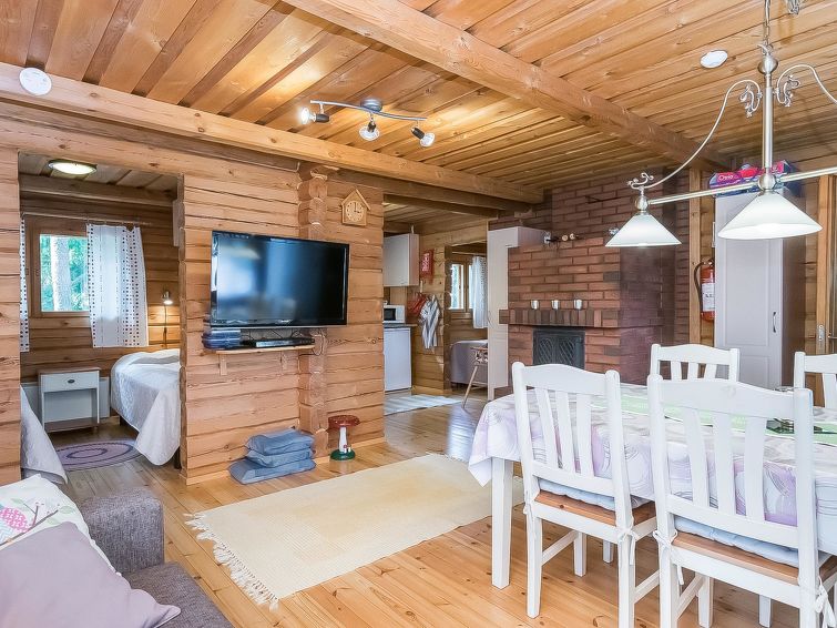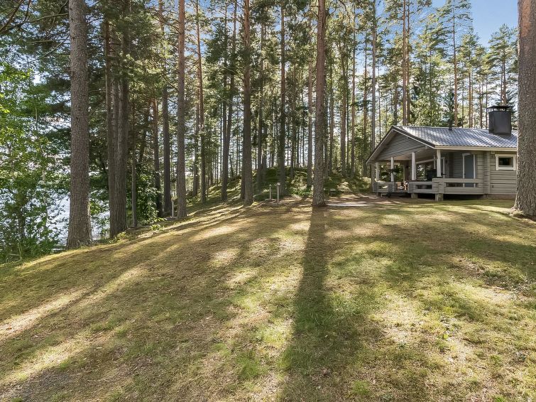 67 km south of Mikkeli, L.Sarkavesi 25 m (length 9 km, width 1 km), hard, gently deepening sandy shore, own boat. Log cottage 1992, renovated 2011, living room/kitchen, sleeping alcove 2 beds, sleeping alcove 2 beds, sauna, washroom with WC, terrace (20 m²). Cottage has WLAN Internet Access.