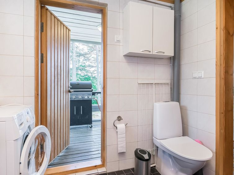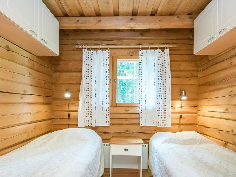 Cottage yard area is in natural state among trees. Campfire site on yard. Illuminated path and steps to jetty, which is on shore. Sleeping alcoves have curtains across ‘doorway’. Handy, neat cottage for 4 persons. Baby crib on request. Bicycles available. During summer there is additional fridgerator (located in the storage). Rentable canoe for 3 persons.