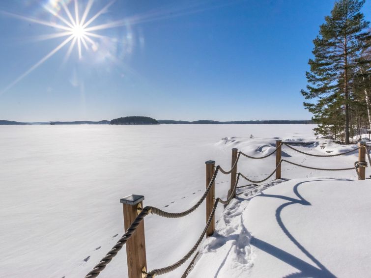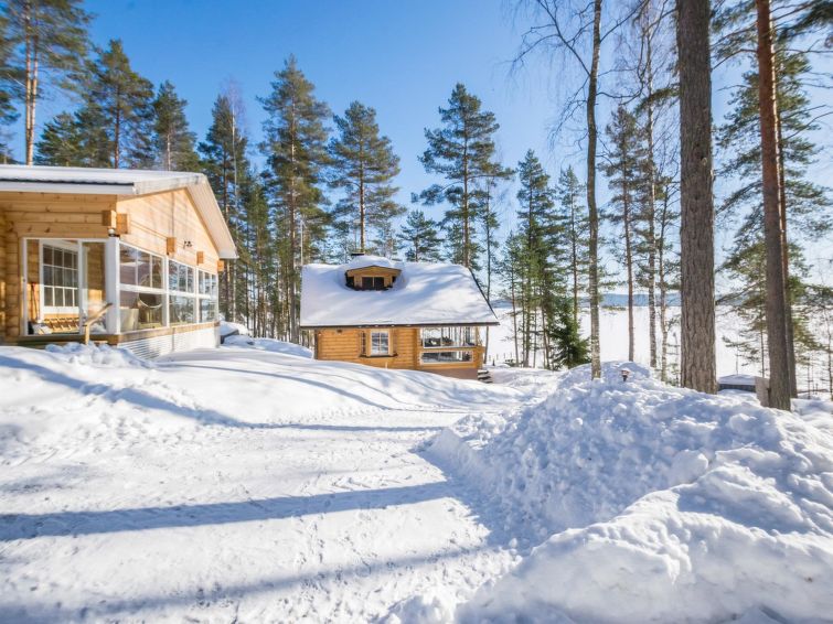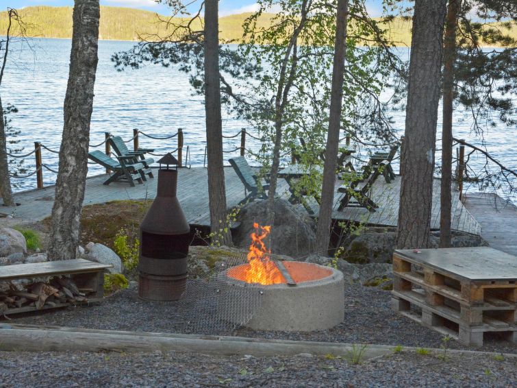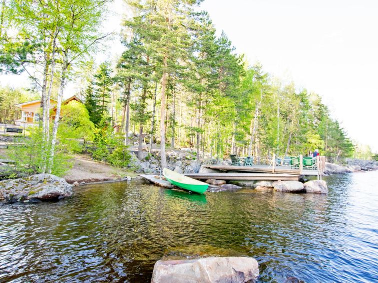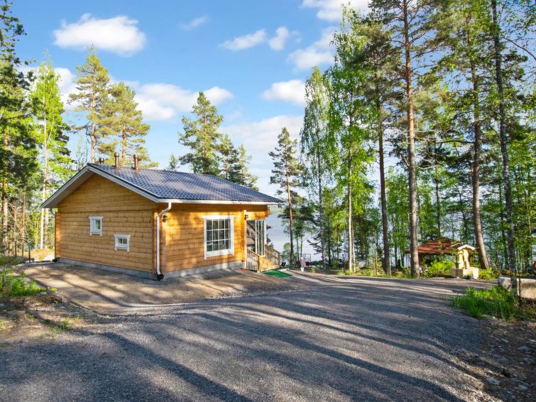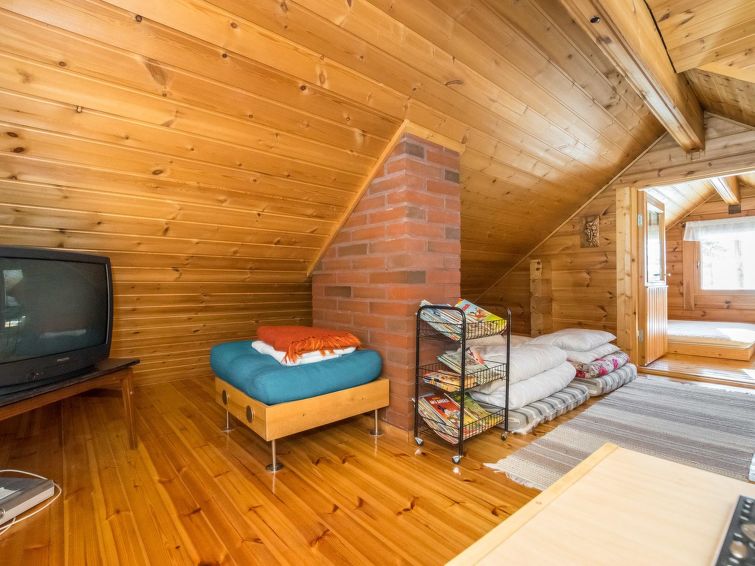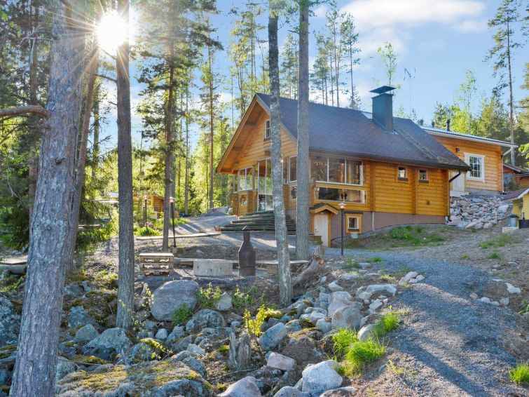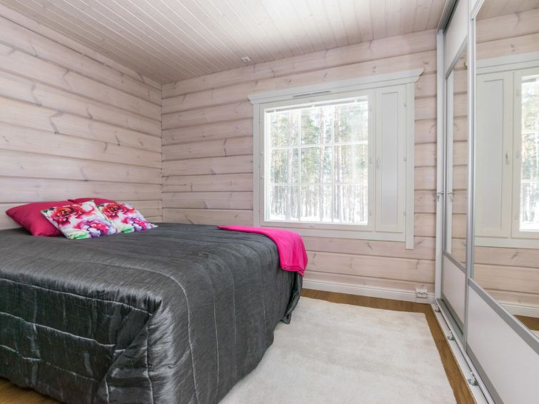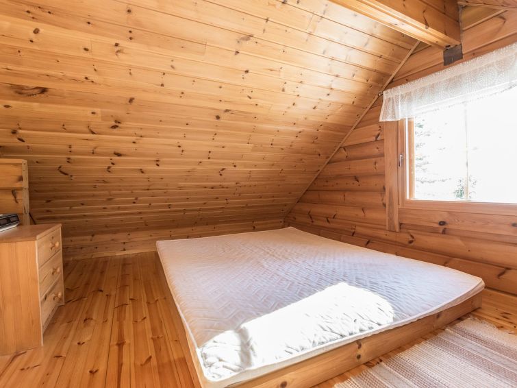 In addition, planed log-built sauna cabin, built in 2000. Living room/kitchen, heat-storing fireplace, sauna (wood-burning sauna stove), cold tap water from the well to the kitchen and washroom, water can be heated in the cauldron, glazed terrace. In the spacious loft space, sleeping area with 2 mattresses in the frame, 3 mattresses in the living area. Ground floor of the cabin 25 m² + spacious loft 40 m² (low room height, sloping ceiling). 2 beds available also in the log-built sleeping shed in the summer season. Fridge, electric stove, wood stove, gas grill and dining table for six in the log-built and glazed summer kitchen. A group of several buildings by the lake Päijänne in the middle of pine forest. The plot is in a natural state (mossed rocks). Large pier area on the beach, ideal for sunbathing and staying. There is no neighbor on the pier side of the plot, so the pier is in a peaceful location. Patio with smoker and fireplace for creating an atmosphere, where you can enjoy of wild landscapes. A peaceful holiday destination for families. Jyväskylä - Lahti waterway in front of the cabin, famous trolling waters nearby. Horse riding possibility 5 km, services of Korpilahti town 11 km, Neste service station and shop 9 km. Muurame Golf 25 km, Spa Hotel Laajavuori 38 km, Peurunka 60 km, Nokkakivi Amusement Park in Lievestuore 58 km. During midsummer, the destination is only available for families ant others who want to spend a peaceful holiday.