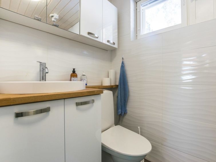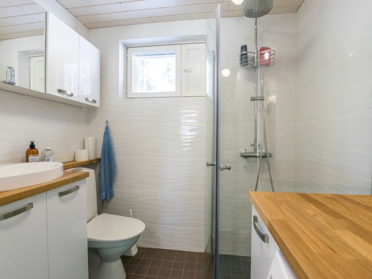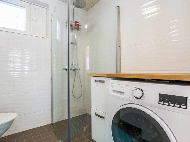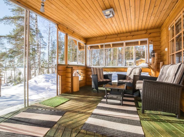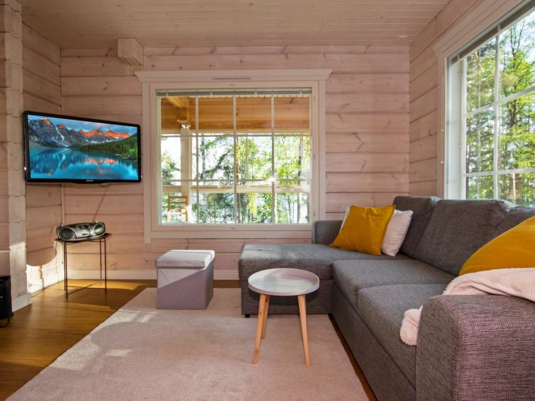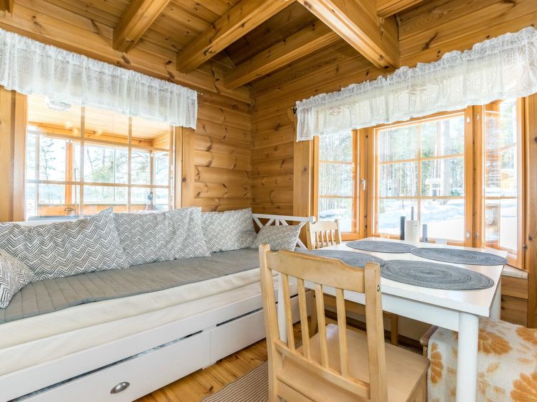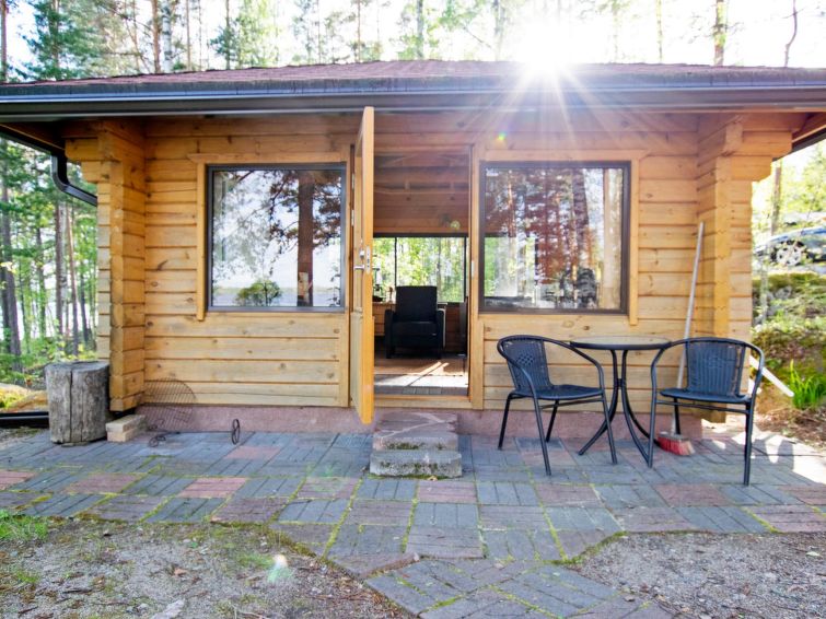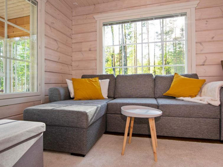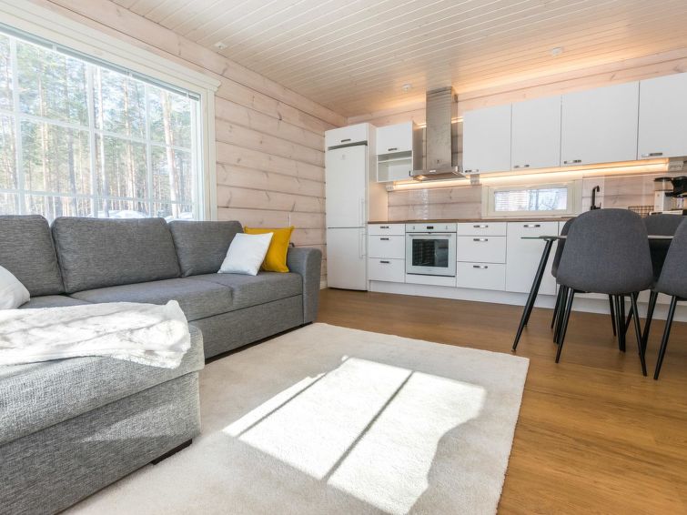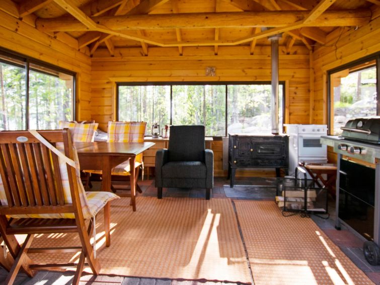 Planed log cabin 2021, living room/kitchen, dining group for four, dishwasher, sofa bed (140x200 cm bed) in living room, sleeping alcove with 160x200 cm Yankee bed, WC with shower and washing machine, running water from the own well (there is also boiler in this cabin), spacious glazed terrace.