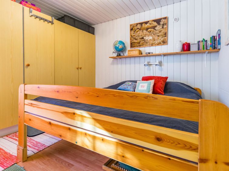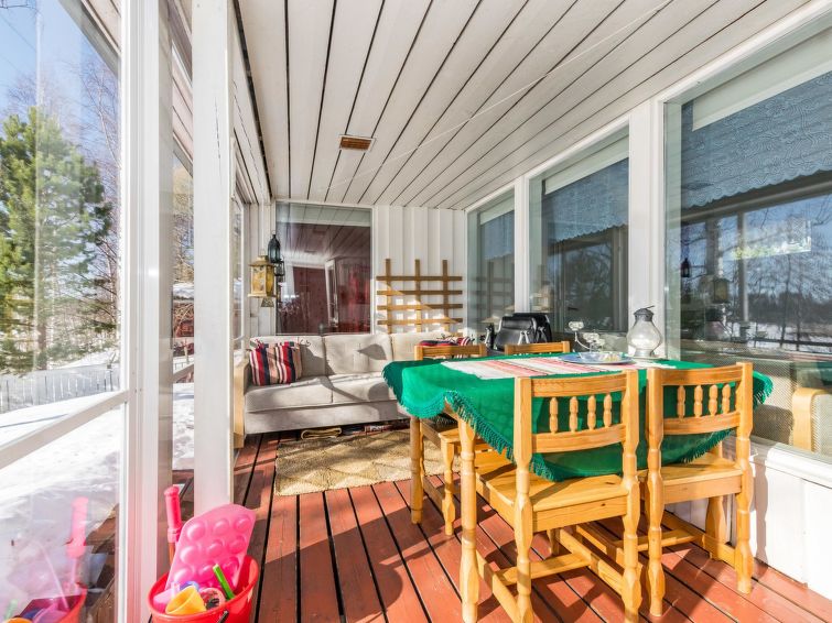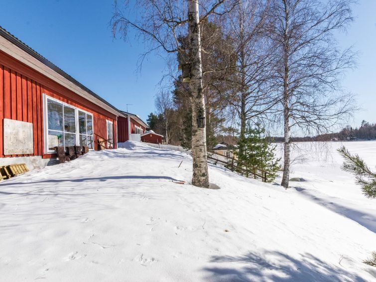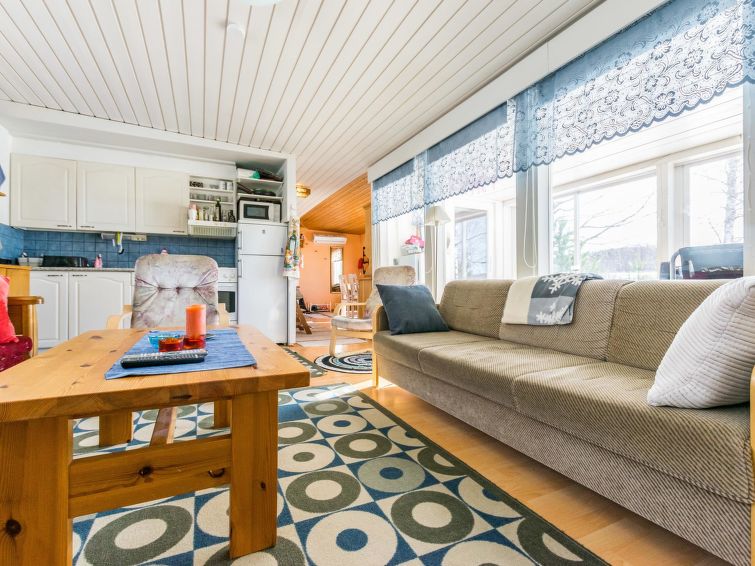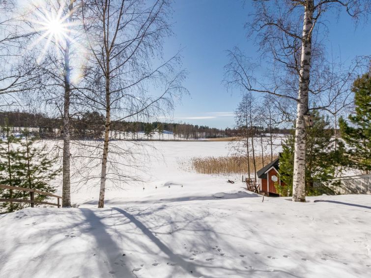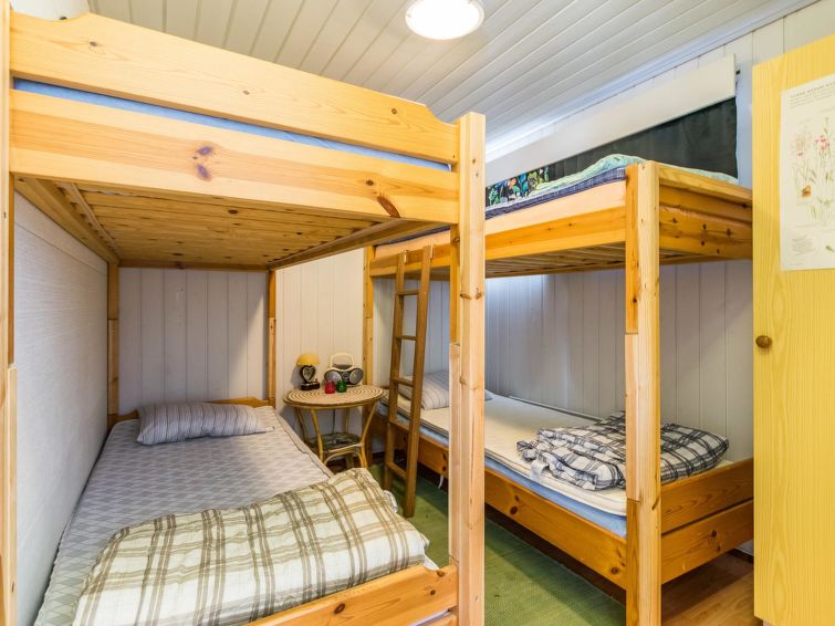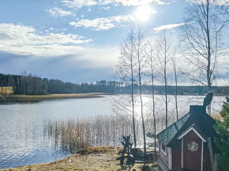 Wooden cabin 1988, bedroom 1: double bed, bedroom 2: 2 bunk beds, washroom, WC in washroom, sauna (electric sauna stove), glazed porch. Cooking hut with outdoor kitchen. The cabin is located in a former holiday village, the cabins are now privately owned. Sloping plot, stairs to the beach at the steepest point, lawn yard. The beach is facing to the west. Spa hotel Peurunka in Laukaa; golf course, gym, spa, disc golf, ice hall and restaurant. Distance 16 km.