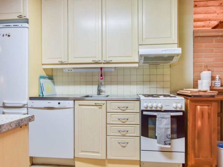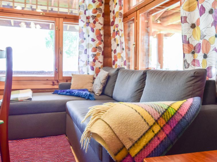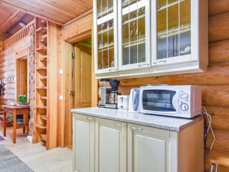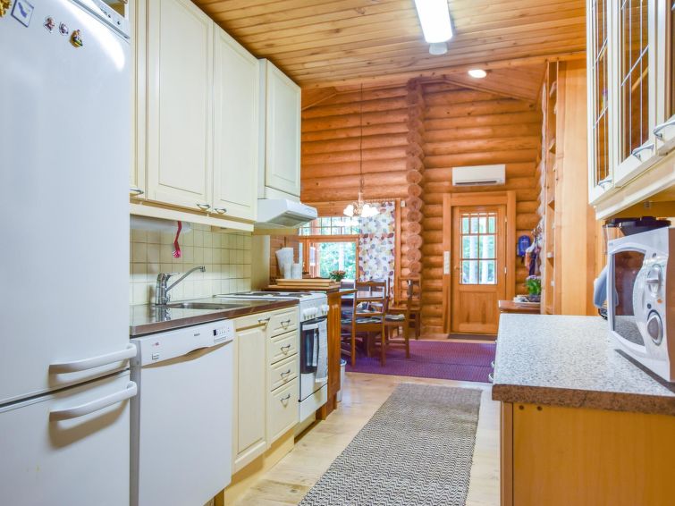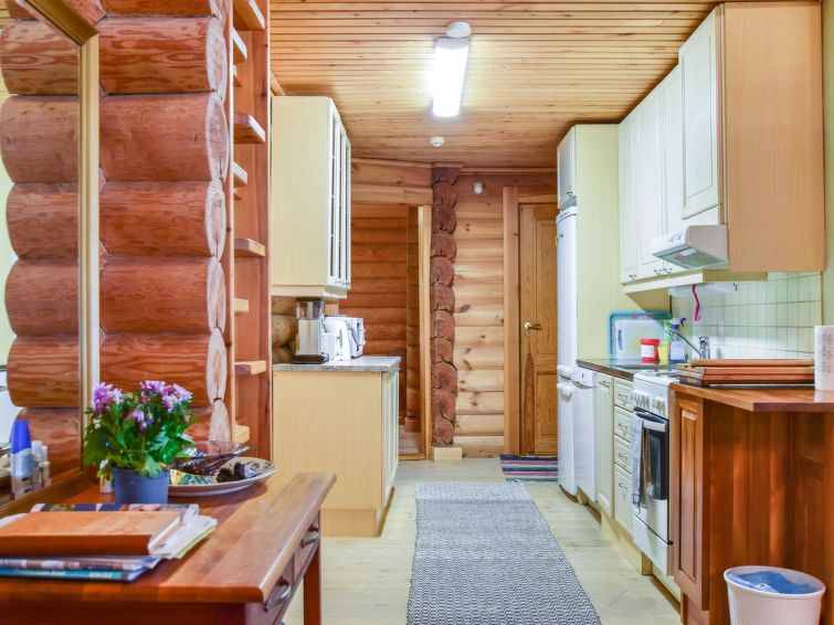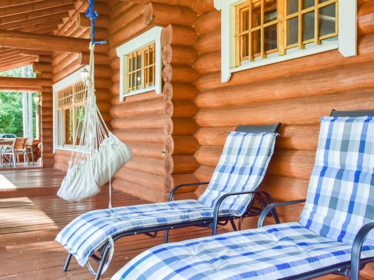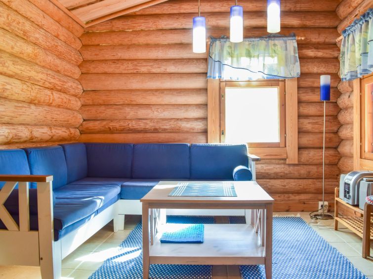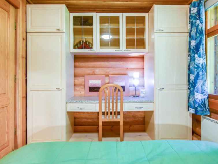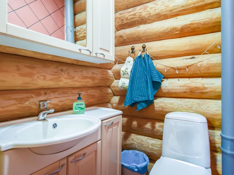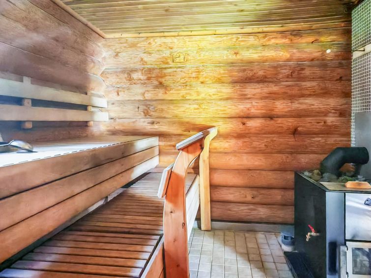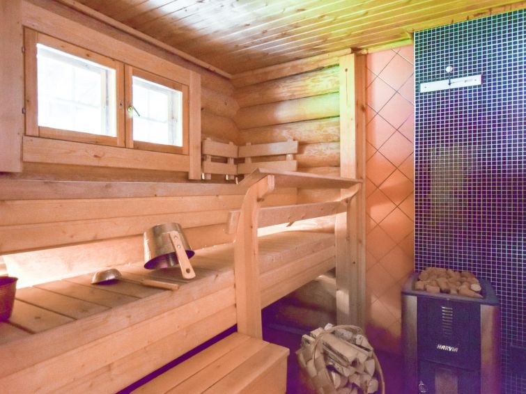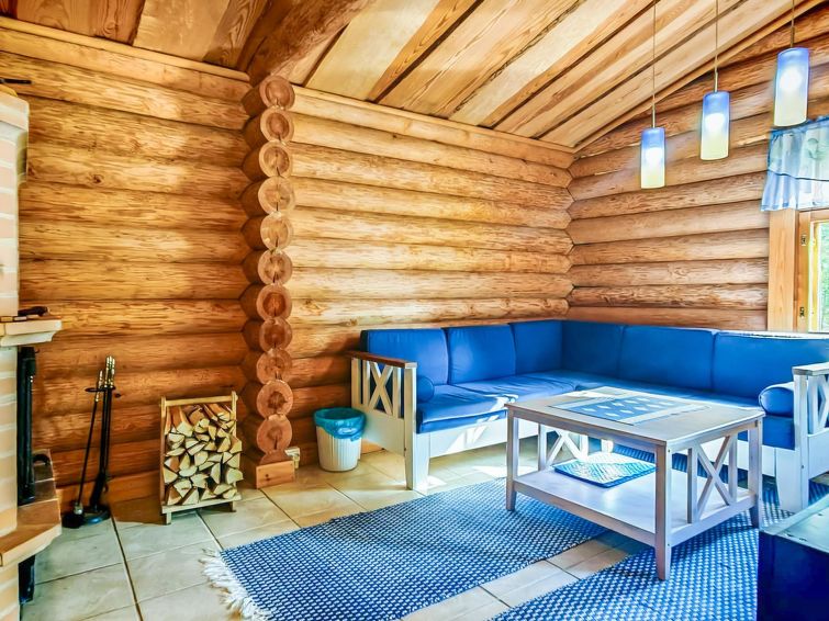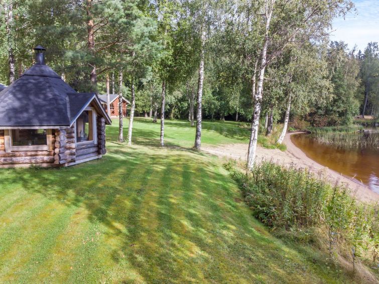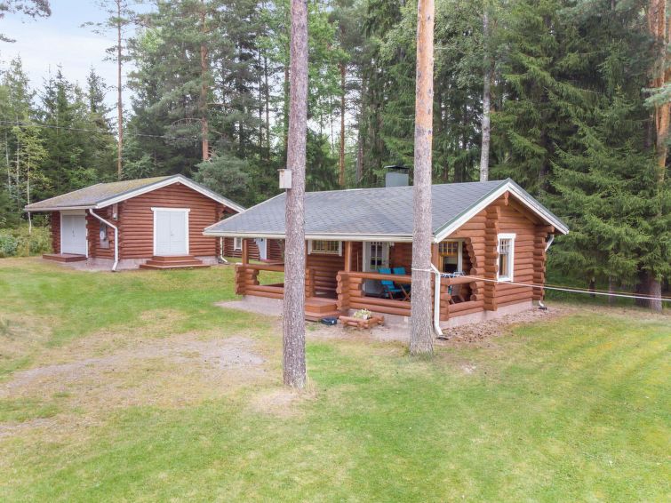 Log cottage 2006, living room/kitchen, 3 bedrooms 2 beds in each, dressing room, washroom, sauna, open porch. Additionally separate sauna building (25 m²), room with fireplace, sauna has electric light and heating, also cold water pipe (sauna building only use in 1.5. - 30.9).