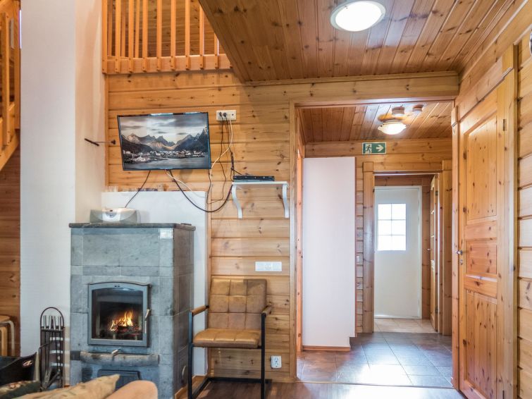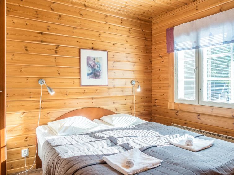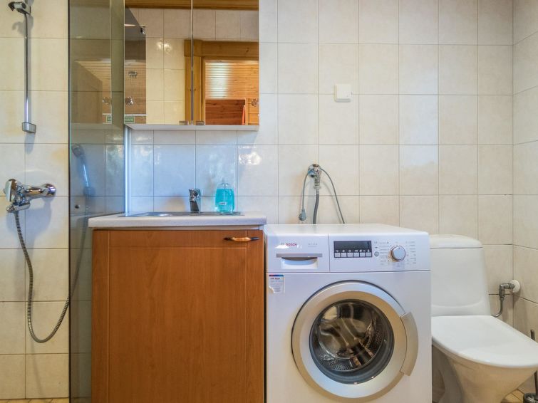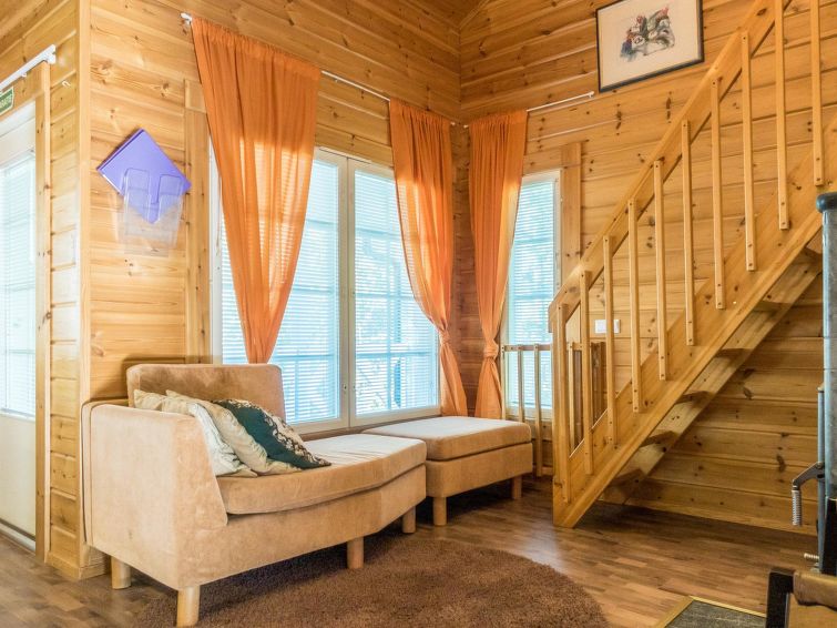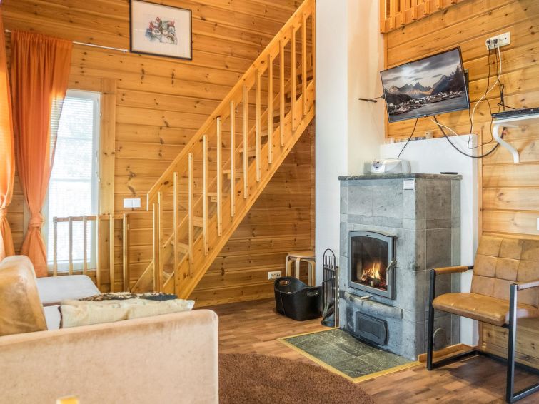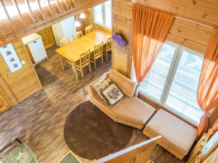 This apartment in log semi-detached house located in Vuokatti ski centre was completed in 2002. Combined living room & kitchen, two bedrooms, one with twin bed, the other with separate beds for two, sauna (electric heating), washroom/wc, upstairs wc. Loft with 2 beds + 2 folding beds.
