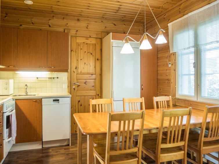 Child equipment: Travel bed, high chair and safety gates top and down stairs. Kajaani 34 km, Sotkamo 8 km. Vuokatti ski slope 100 m, cross country track 150 m. Small lake 2 km. No pets allowed. Barbecue hut in shared use.