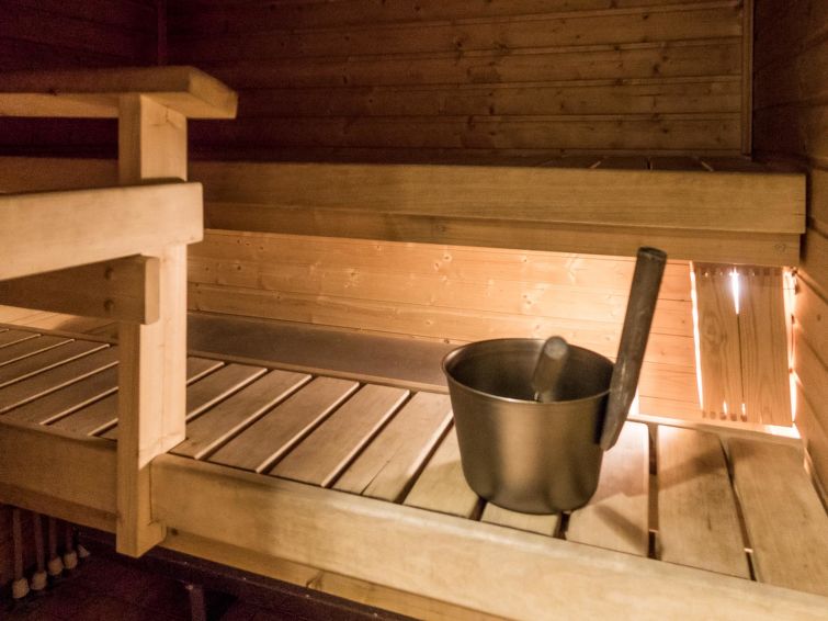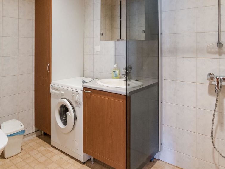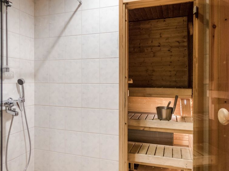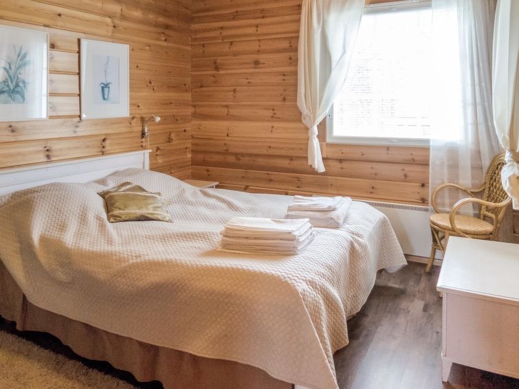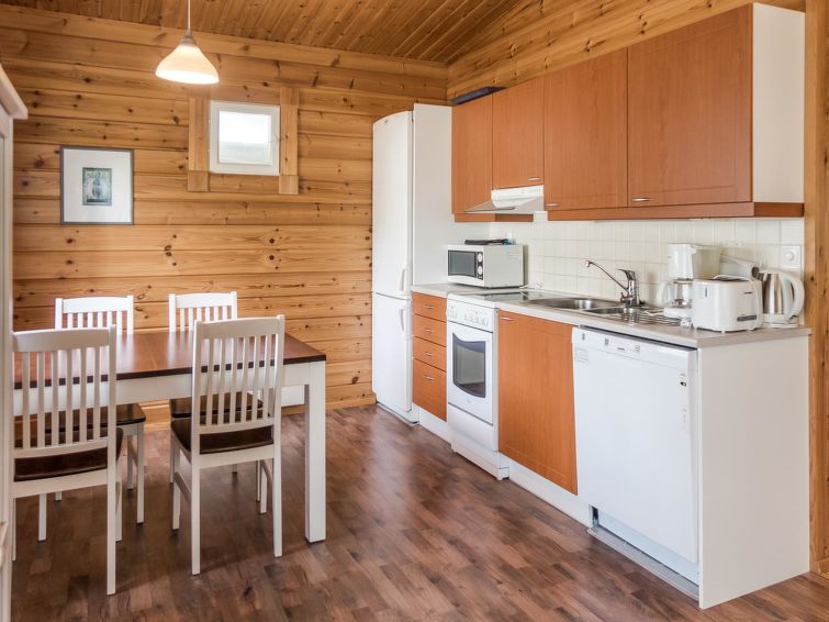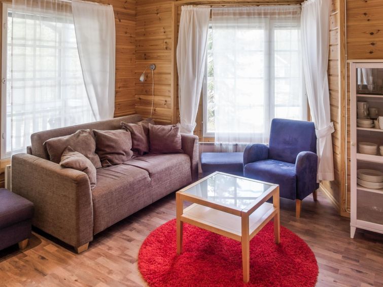 This apartment in log semi-detached house located in Vuokatti ski centre was completed in 2003. Floor area 48m². Combined living room & kitchen with sofa-bed, bedroom with twin bed, sauna (electric heating), washroom with toilet, veranda.Wi-fi by the request and in advance, straight from the cottage owner. Kajaani 33 km, Sotkamo 7 km. Vuokatti ski slope 150 m, cross country track 150 m. Small lake 1,5 km. No pets allowed.