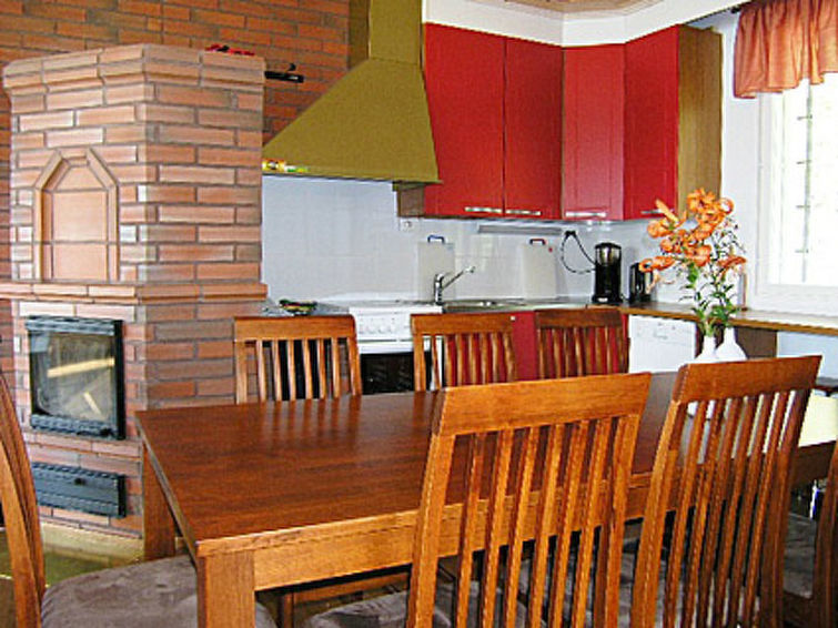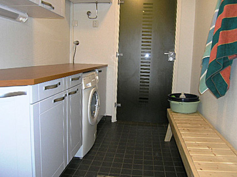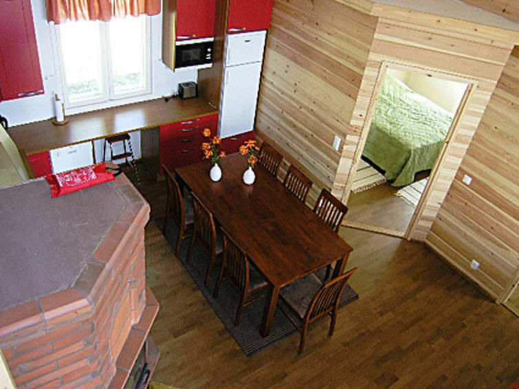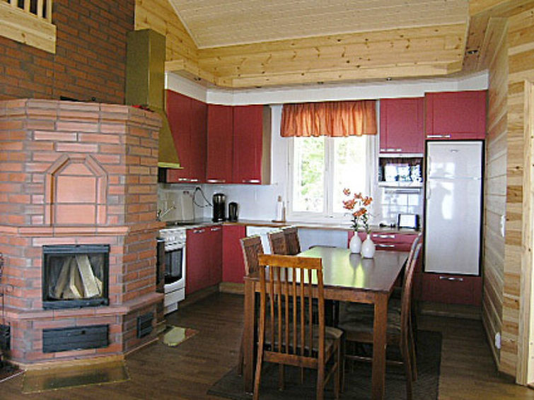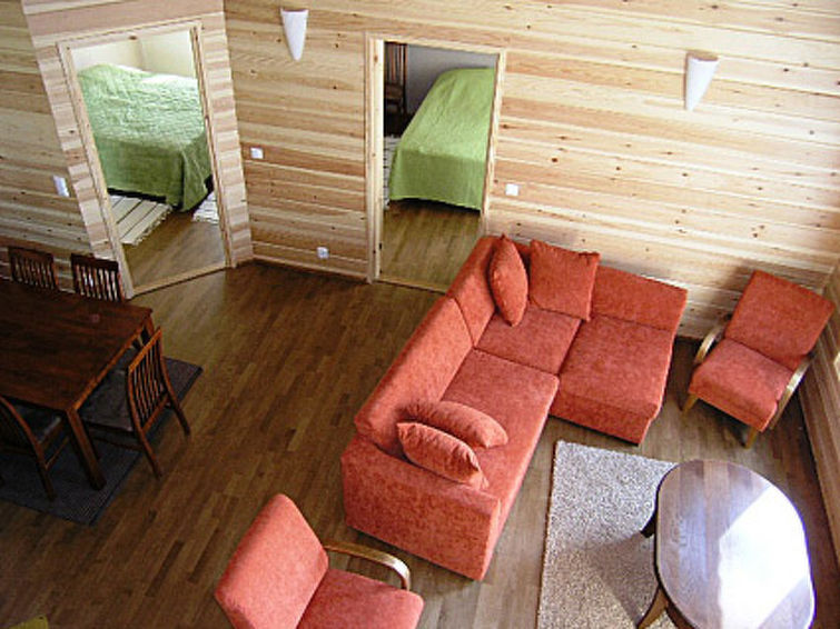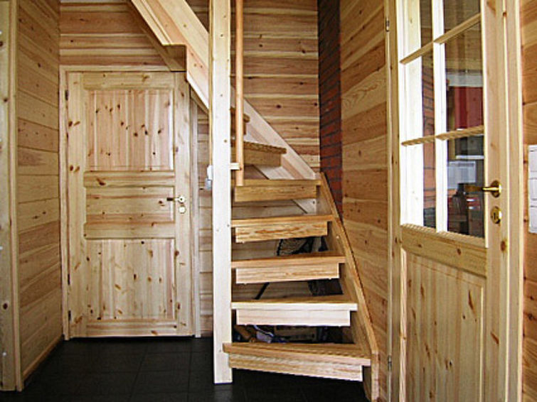Wooden cottage 2007,living room/kitchen, 2 bedrooms double bed in one and single beds in another, sleeping loft (sloping ceilings, partly more than 160 cm high) 2 beds (80 and 120 cm wide), utility room/dressing room, washroom, sauna, hall, open porch.