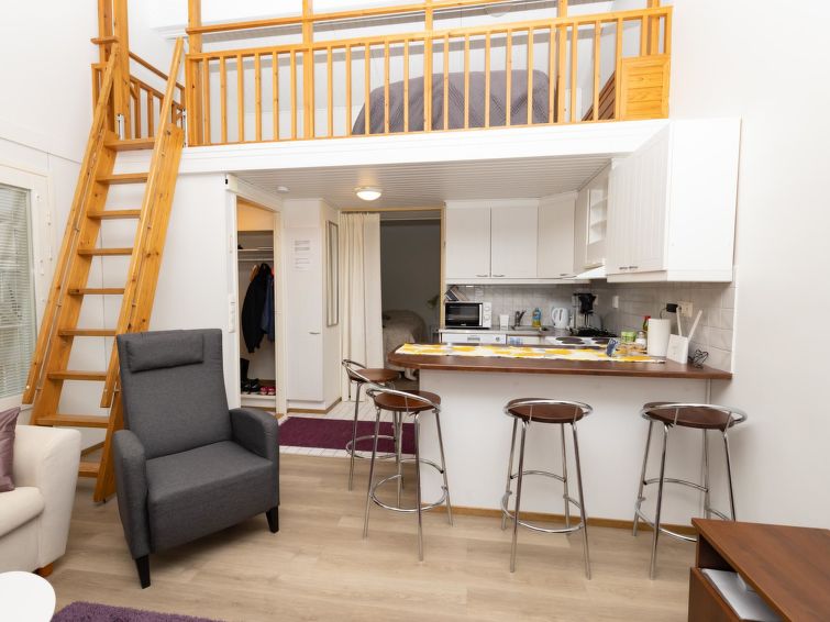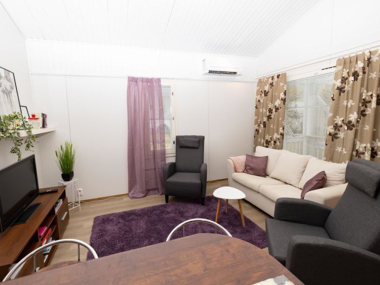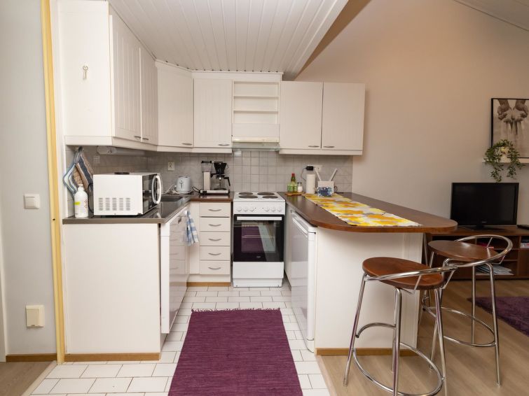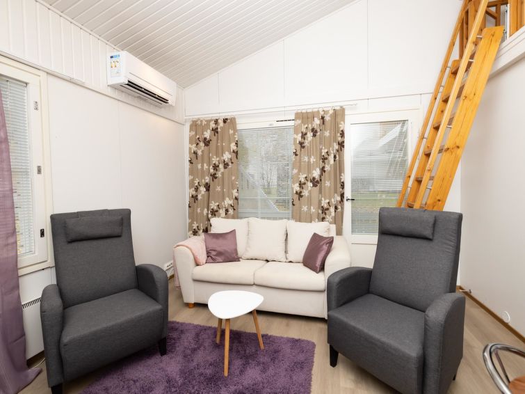 A confortable rowhouse in Vuokatti, near Katinkulta spa hotel. Graduated in 1990 built and renovated in 2018. Area: 35 m² + loft 11 m², kitchen, living room, a bedroom with doublebed. Sauna (electric stove), shower / toilet. Open loft with two beds, 80 cm wide and 120 cm wide. Living room with sofa bed for one person (120 cm wide). Terrace with furniture / dinning for 4 and grill.