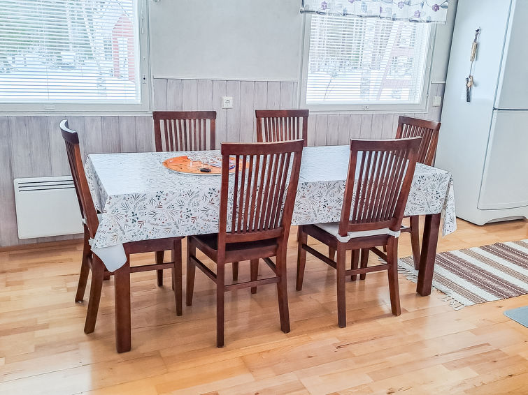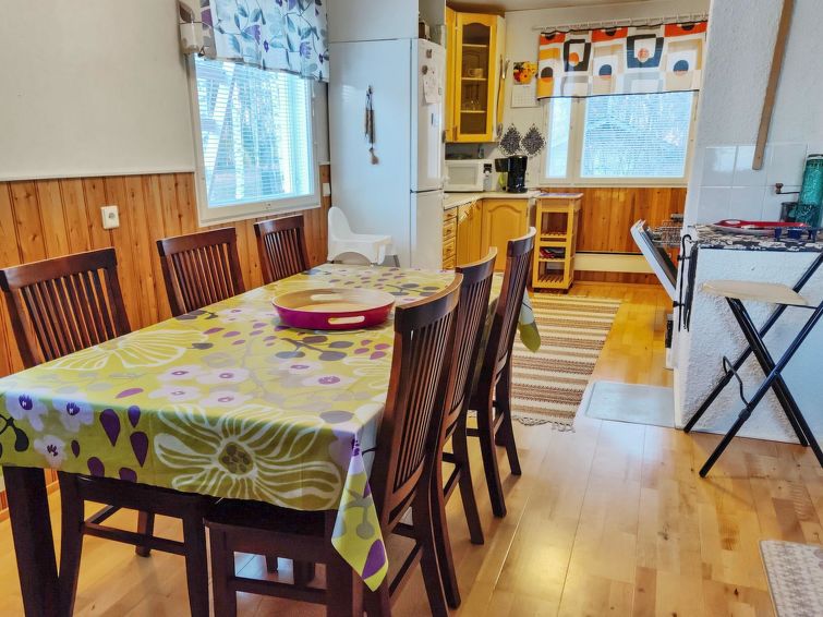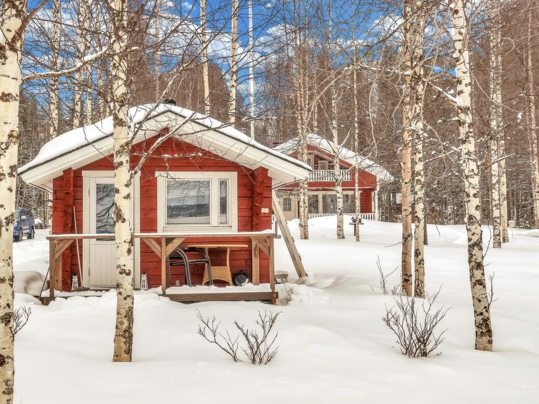 Cabin on a lawn plot by the big lake, nice bitch trees are also growing on the plot. Wood-heated lakeside sauna. Located on the border of Rovaniemi and Pello, a short distance to both.