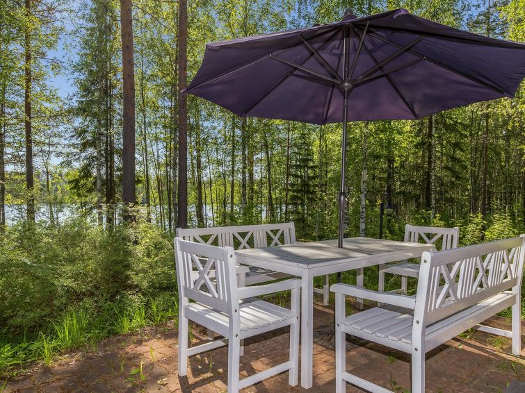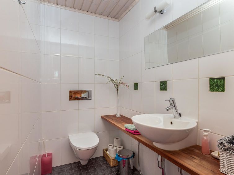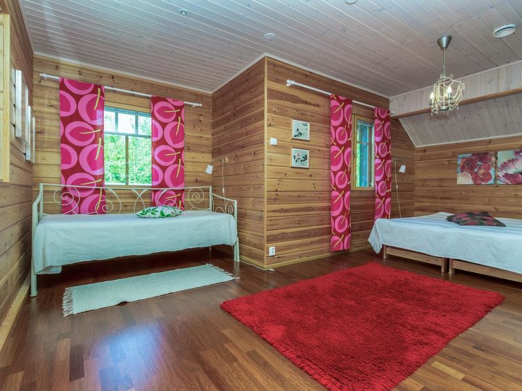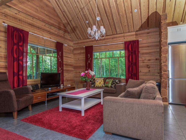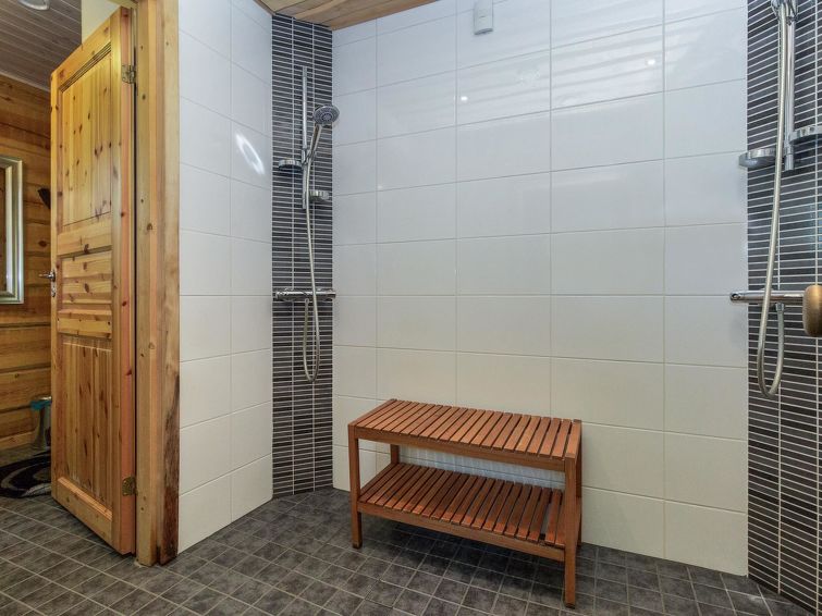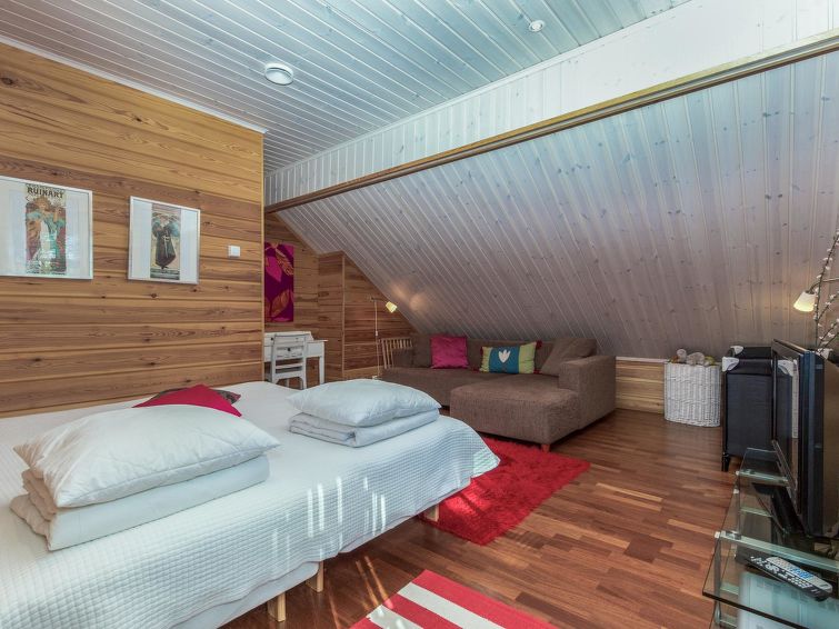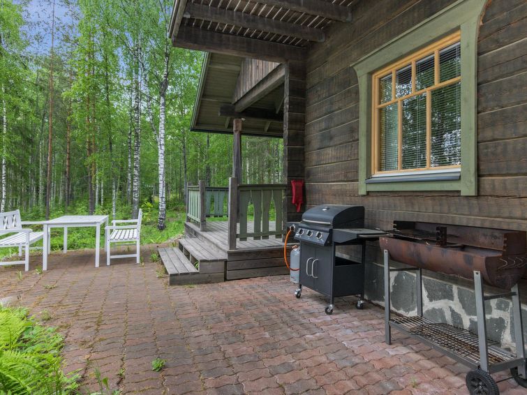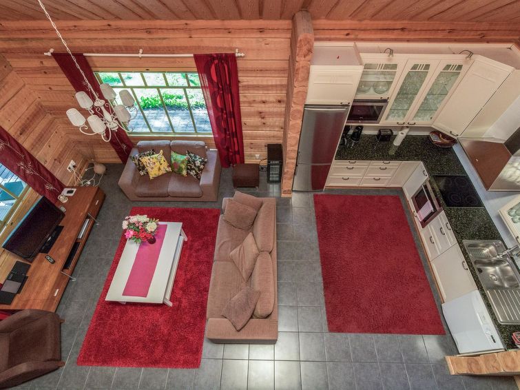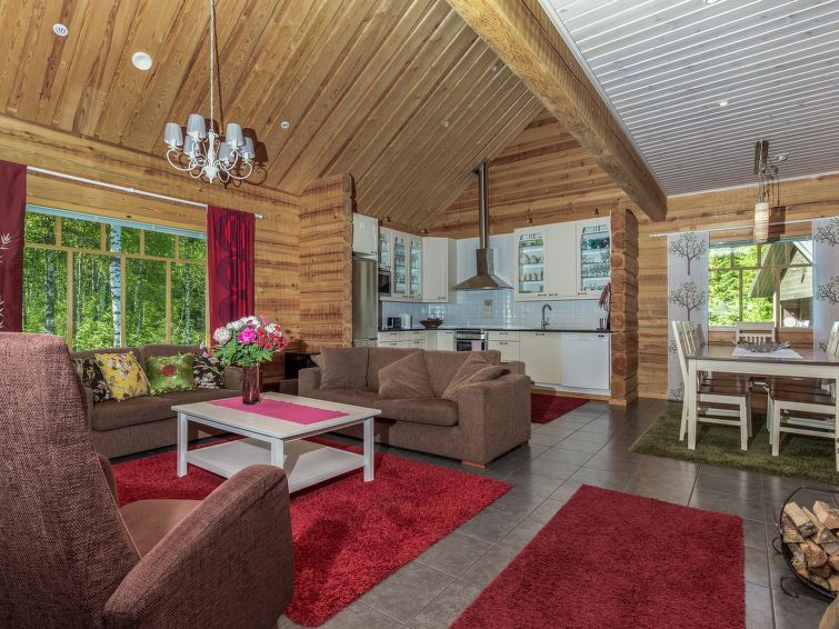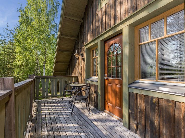 Log villa 2008, kitchen (40 m²), bedroom (11 m²) with double bed, dressing room/utility room, washroom (2 showers), sauna (electric sauna stove), separate WC, two terraces.