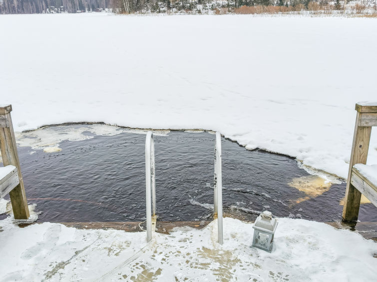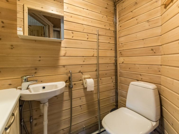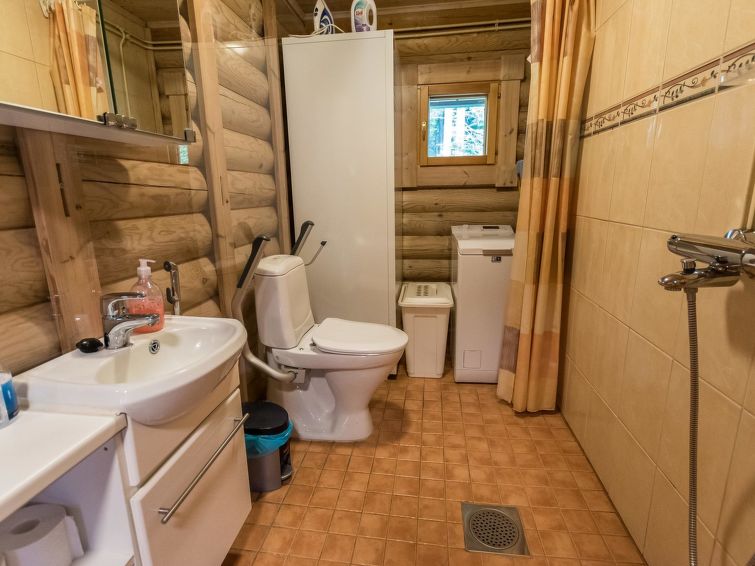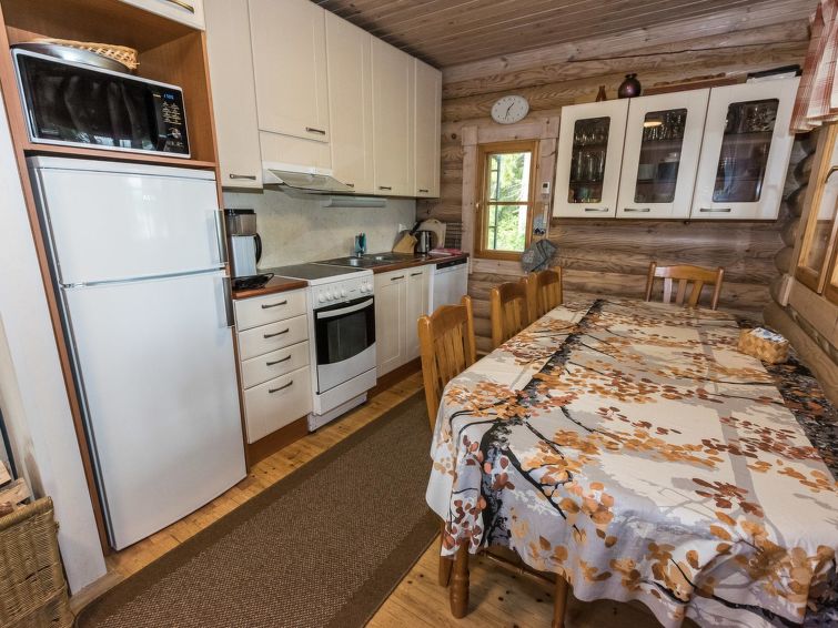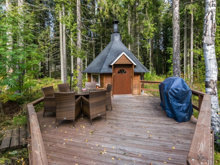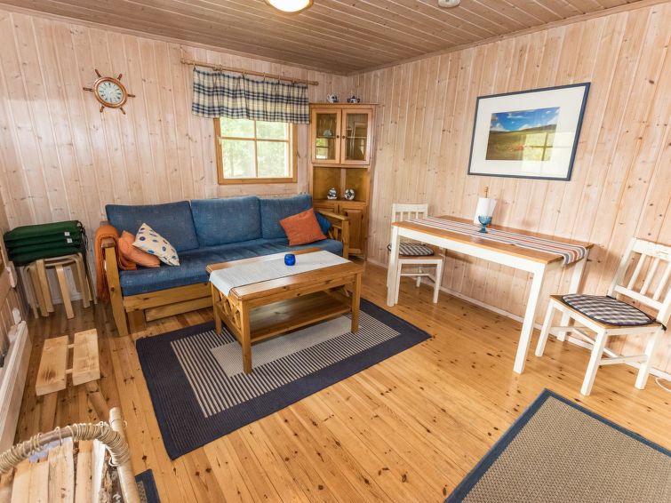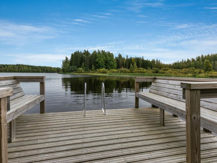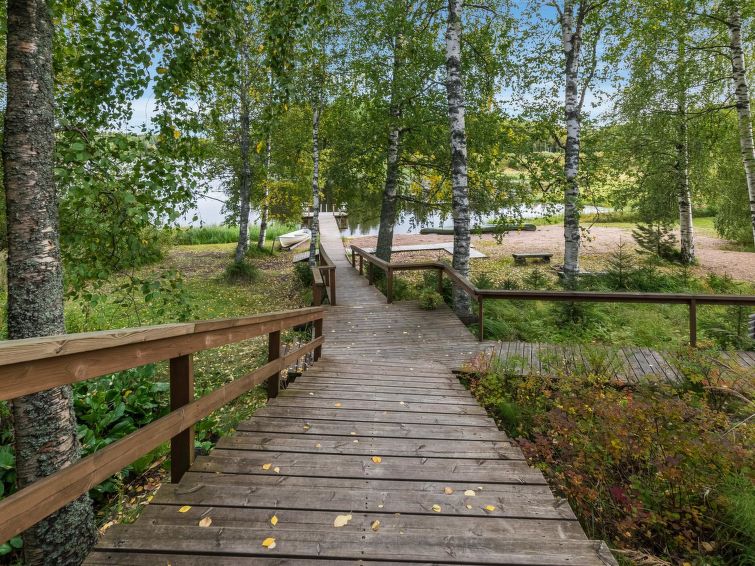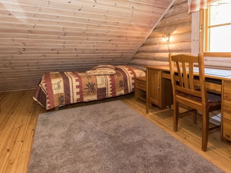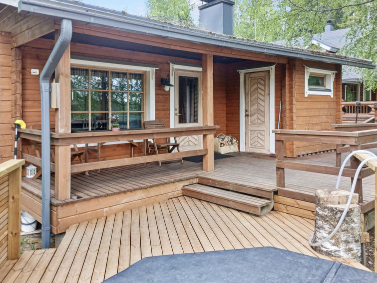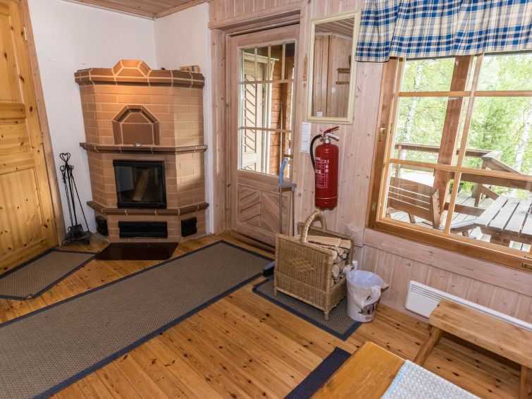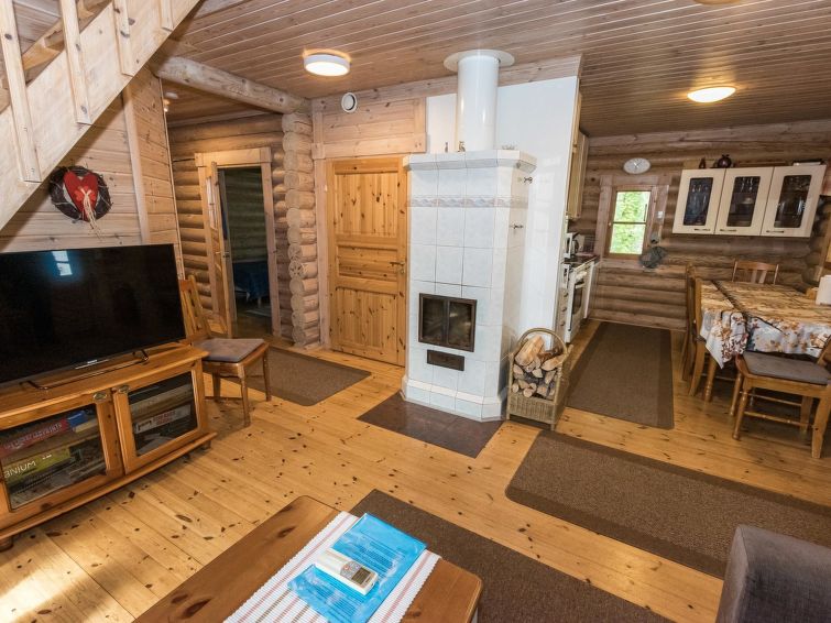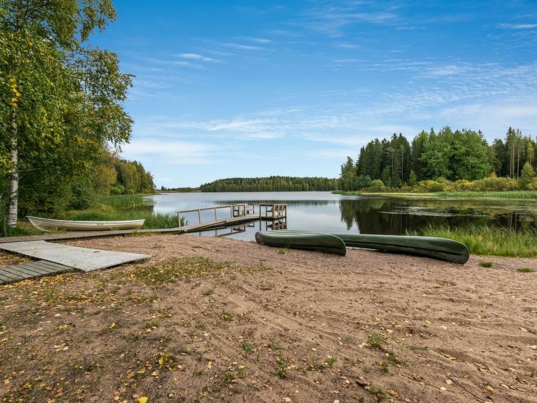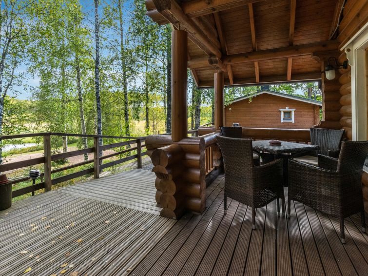 Spacious, stylish log cottage. Hard slope down to sauna and shore makes cottage ideal for e.g. disabled persons; cottage doorways are also wider than normal. Chilid equipment: crib, highchair, potty and child safety gates both downstairs and upstairs.