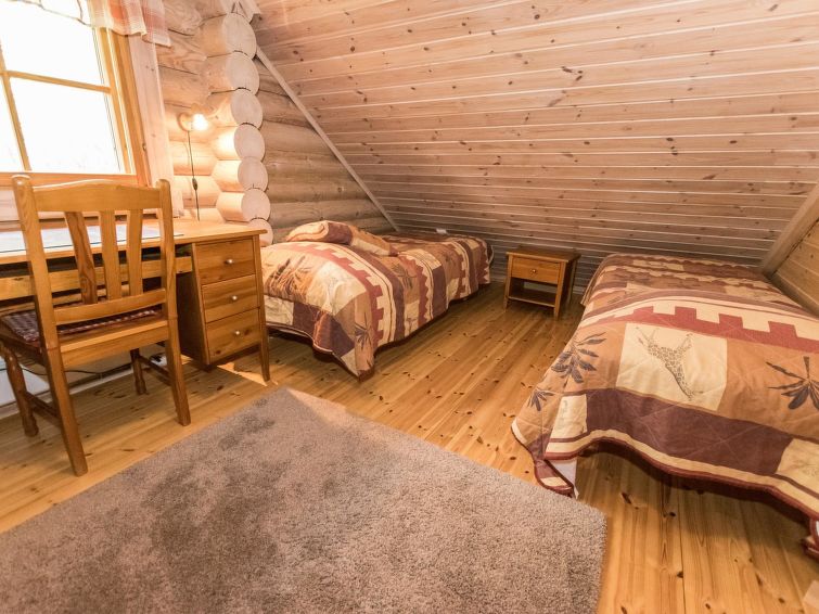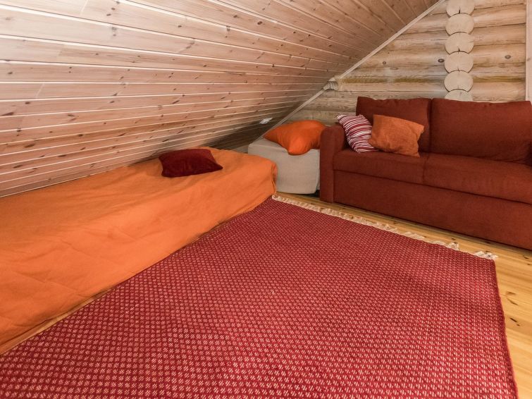 Log cottage 2006, living room / kitchen, downstairs 2 bedrooms: one bedroom with 2 beds and second bedroom 2 beds with one mattress pad (beds can be separated on advance request), upstairs one bedroom 3 beds, sleeping loft convertible sofa/ double bed, washroom, large open porch.