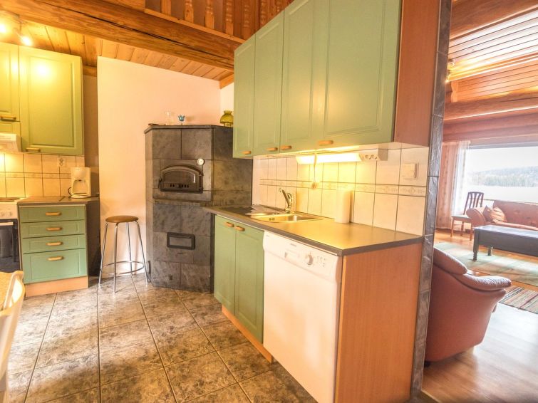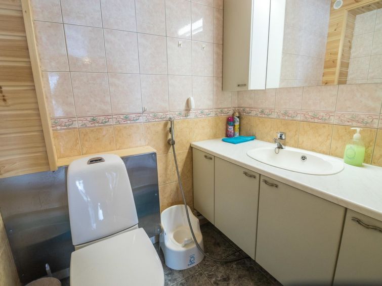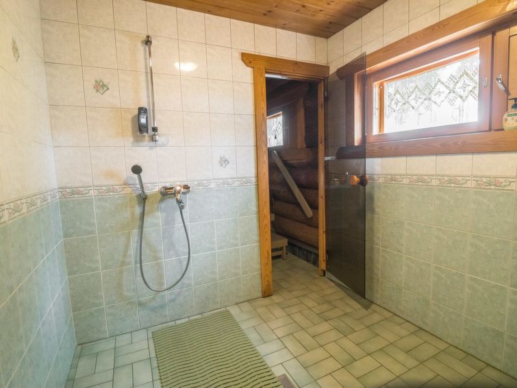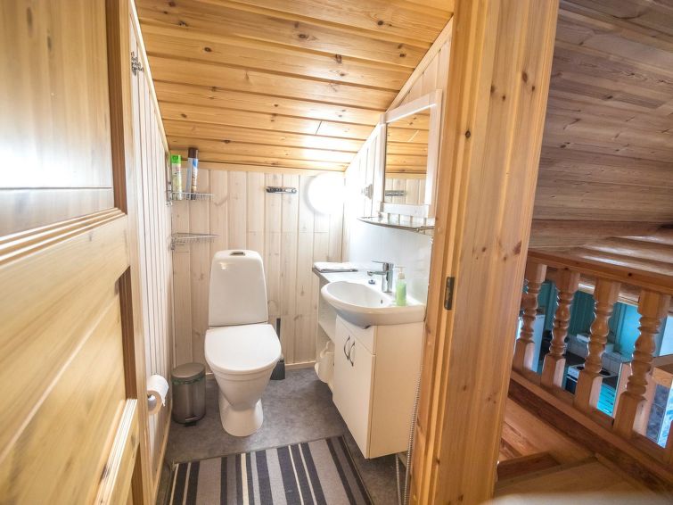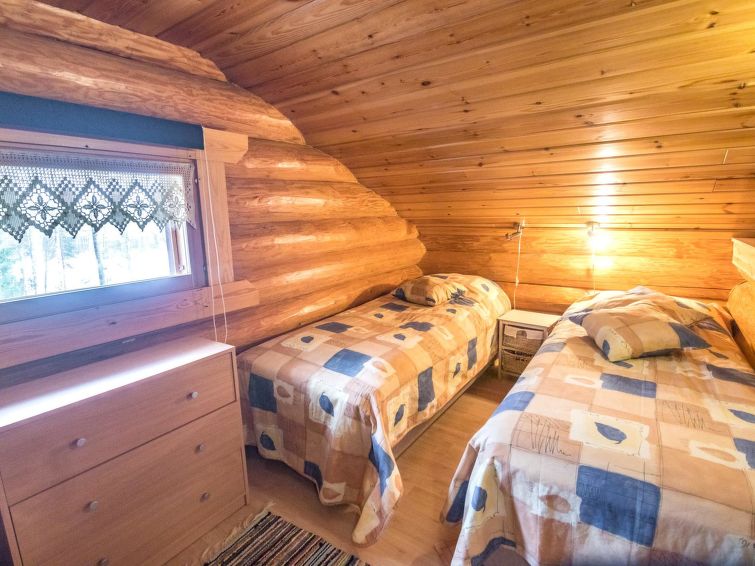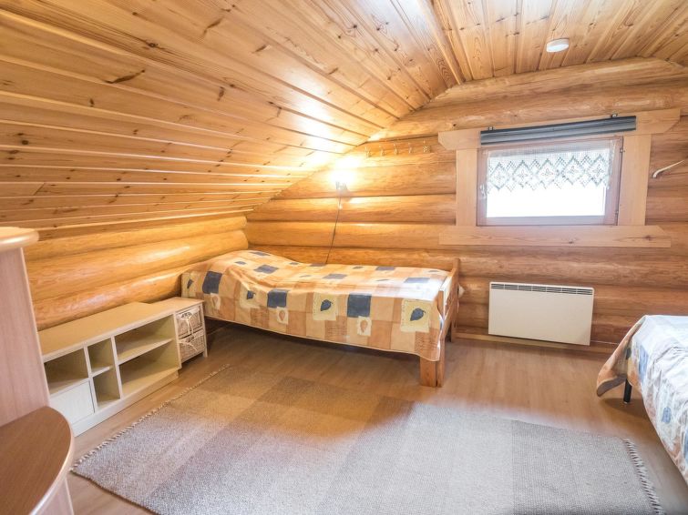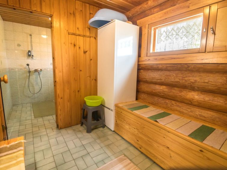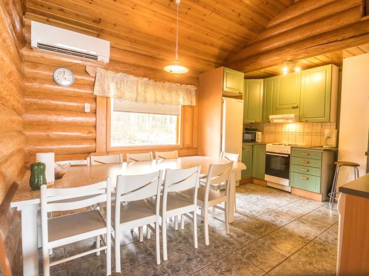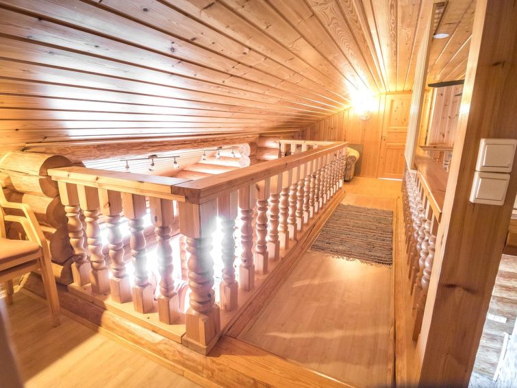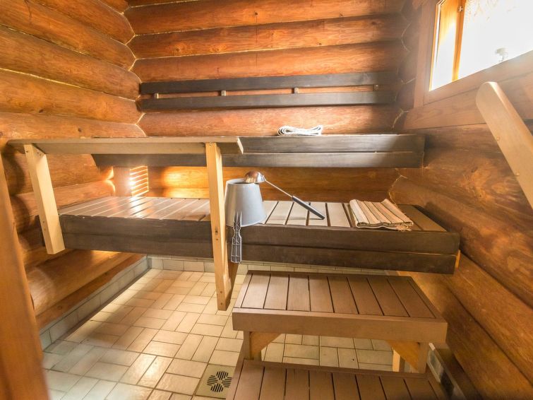 Log cottage 2003, downstairs kitchen, livingroom, 2 bedrooms double bed in each, upstairs lounge and two bedrooms (ceiling height less than 2 m) both with 2 double beds + bed, washroom, dressing room, sauna, open porch. Own well. 2 x wc.