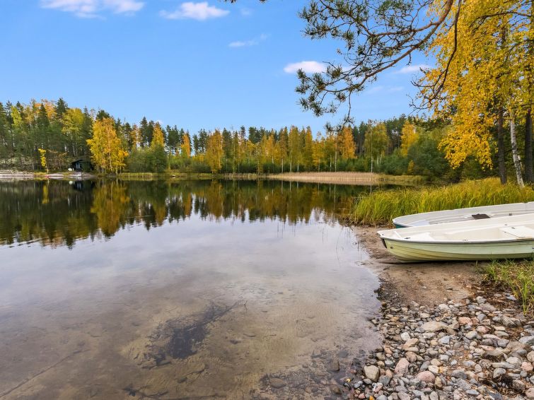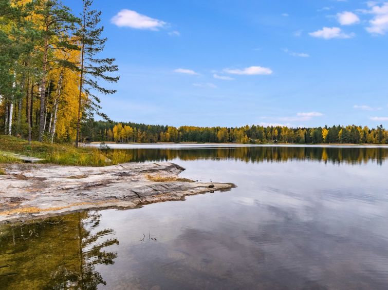 Internet-connection included in the price. High standard chalet in splendid location, inhabitable all year round. Downstairs large bedrooms ; in 50 m2 sleeping loft plenty of room for several people. Sauna has own entrance and porch for cooling off. Sun shines on plot all day long.