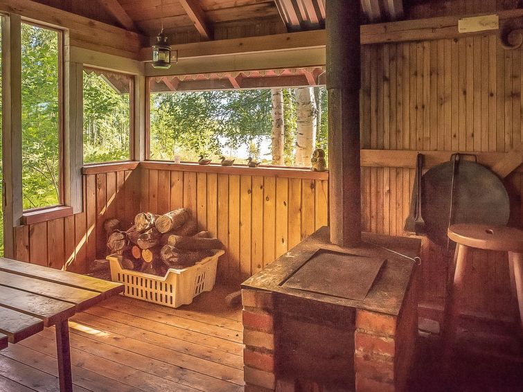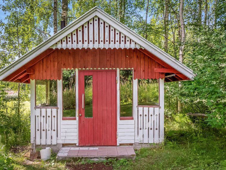This wooden cottage in Tipasoja area by Lake Räätäjärvi was completed in 1995. Own Boat. Floor area 60 m². Combined living room & kitchen with two sofa-beds (extra beds 2-4 persons), bedroom with twin bed, sauna (wood heated), shower, dressing room, wc. Terrase. Nice yard.