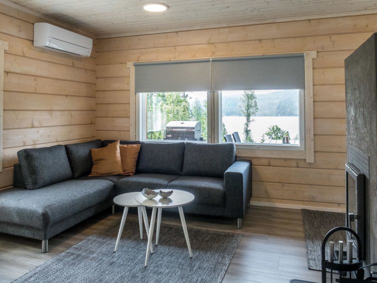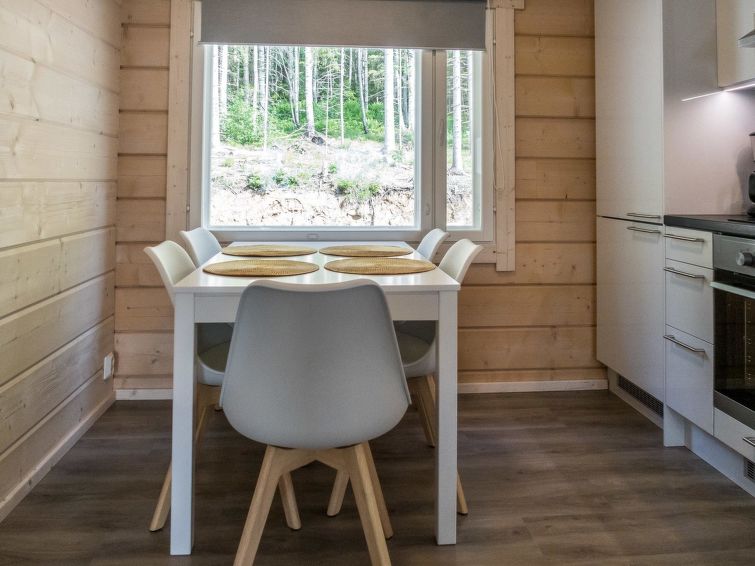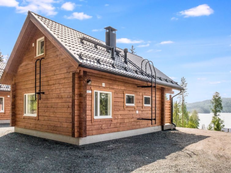 Laminated-log cabin, built in 2022, near the lake Jerojärvi in Koli tourist area (Koli 4.5 km). The cabins (4 cabins in a row) have shared shallow sand beach, pier and lean-to shelter, distance is about 200 m.