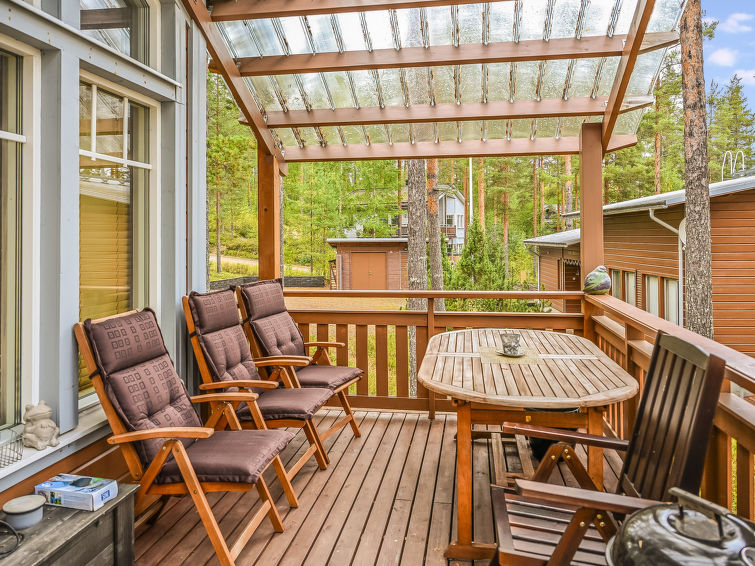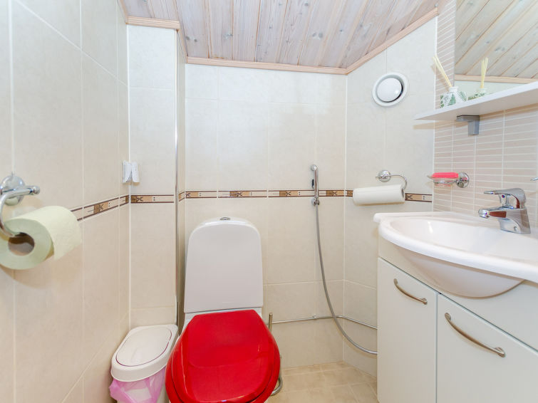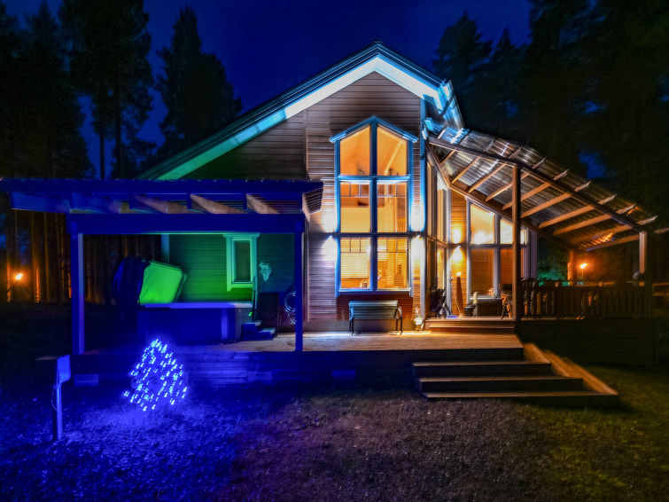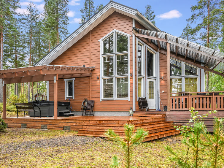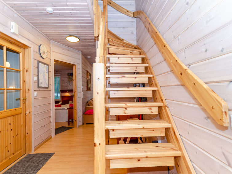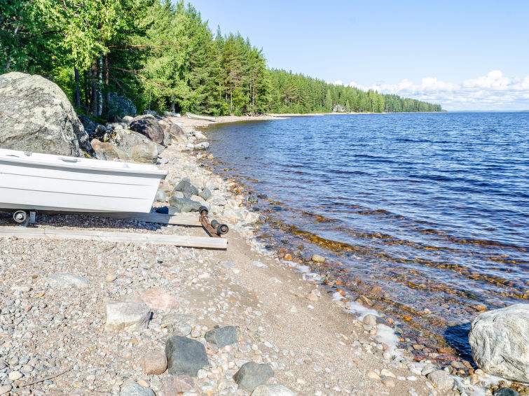 77 km north of Joensuu, Lake Pielinen 20 m (871,2 km²), gently deepening, partly stony bottom, own boat. Wood cottage 2008, kitchen-living room with convertible sofa, 2 bedrooms with double beds in each, upstairs bed room with 2 beds and 2 camp beds, washroom, sauna (elec. stove), terrace. Modern and high standard cottage by the Lake Pielinen in Loma-Koli cottage area. Hiking trails near by. There is a hydro massage bath in the washing room. There are two tv-sets: one with plasma screen and one with LCD screen, also DVD and VRC are available. Wireless internet connection, satellite antenna. Good possibilities for fishing. There is a boat with outboard motor. The cottage is suitable for downhill and cross-country skiers; Ukko-Koli slopes 8 km.