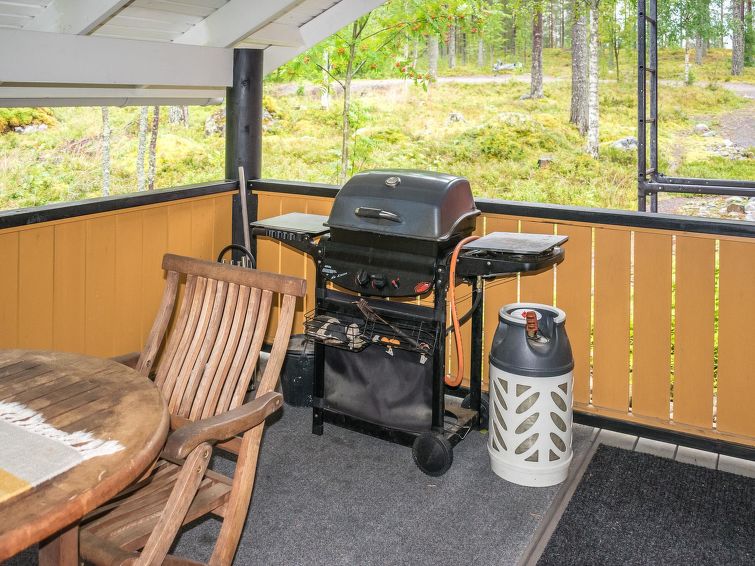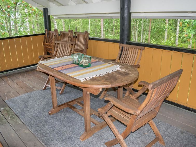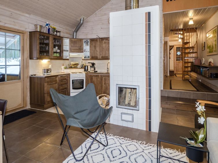 Living room, kitchen, one bedroom with double bed, sleeping gallery with 2 beds and sofa bed for 1-2 persons, washroom, sauna (elec. stove), terrace, carport.