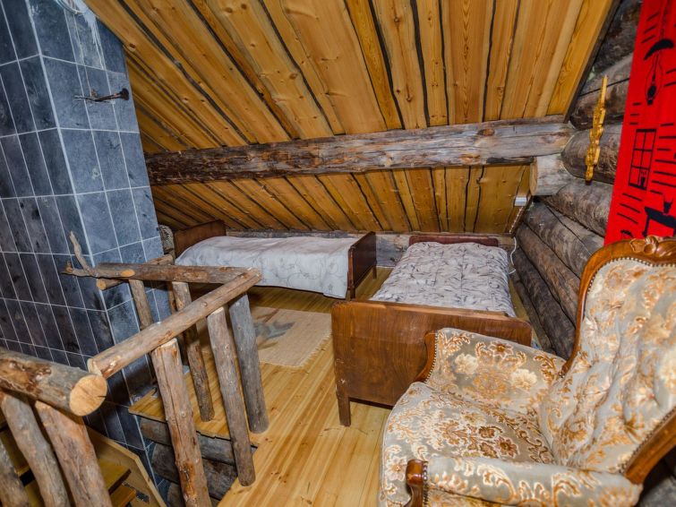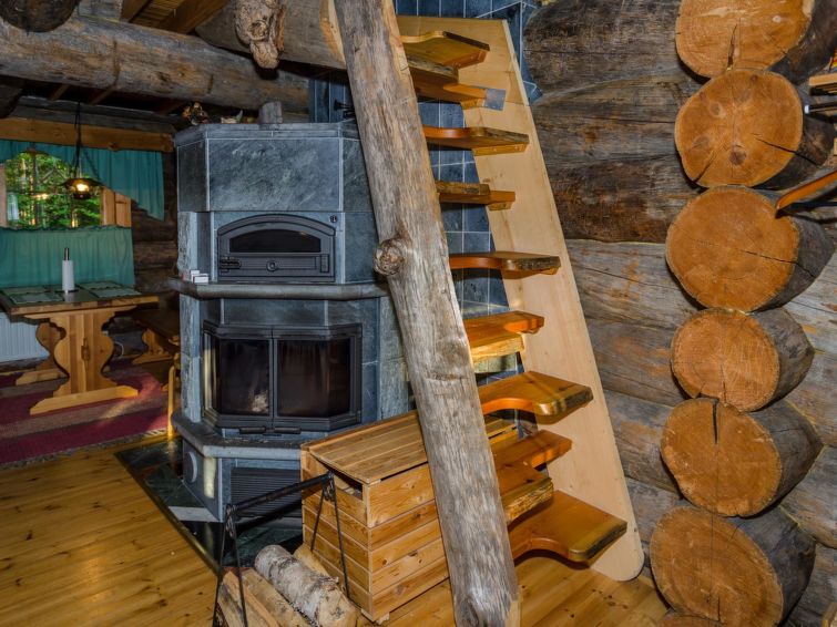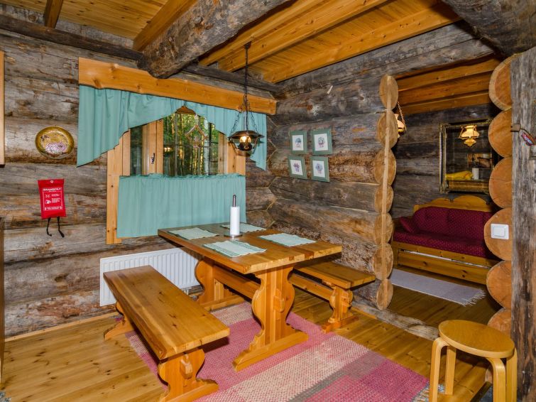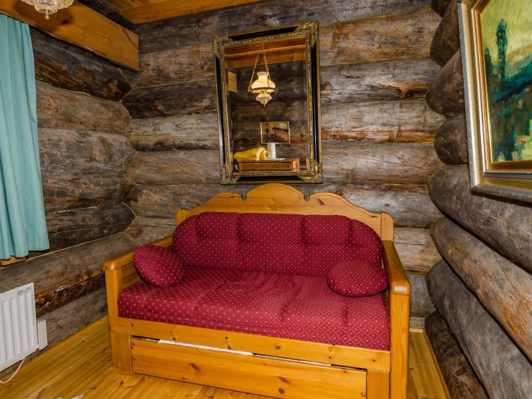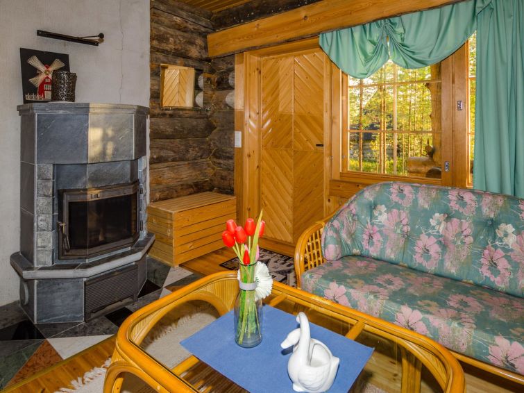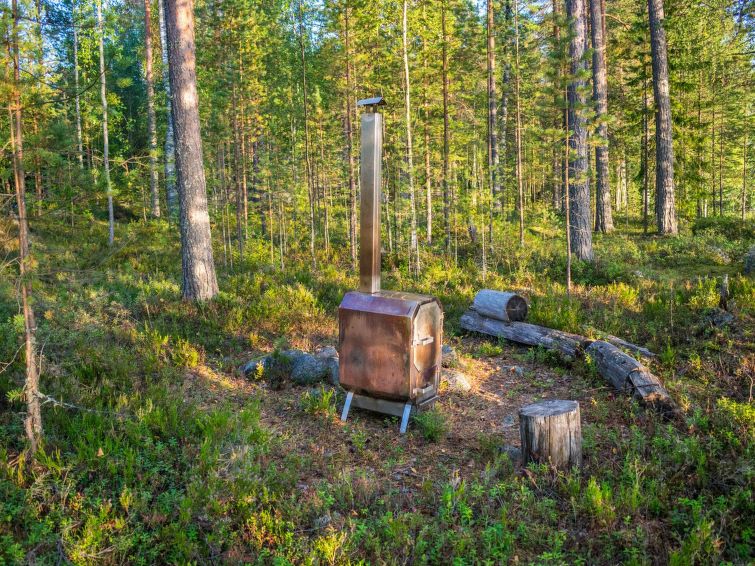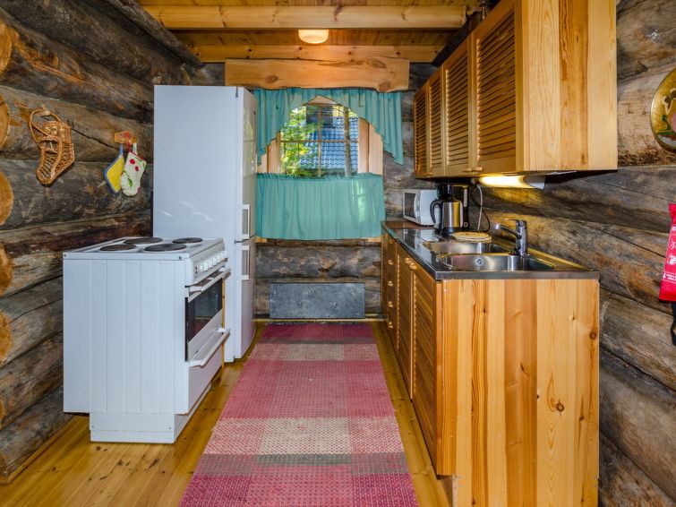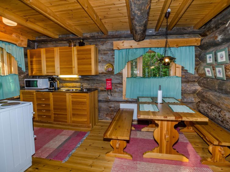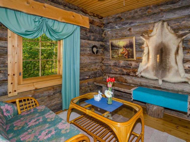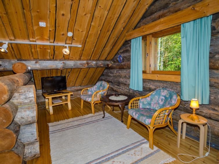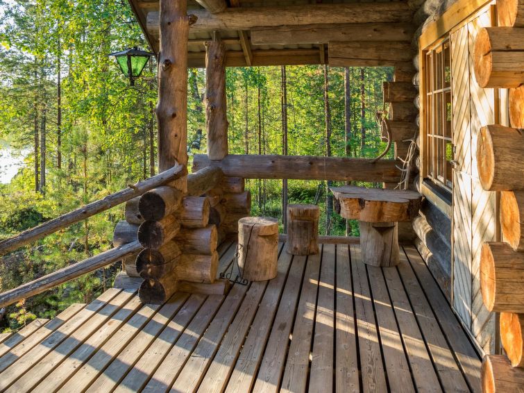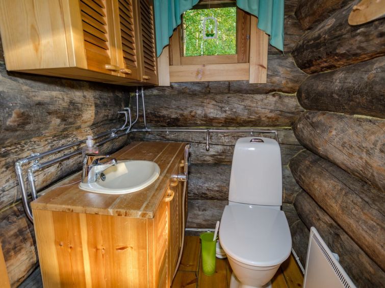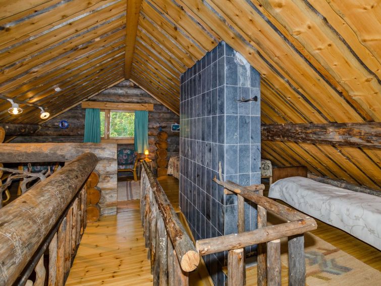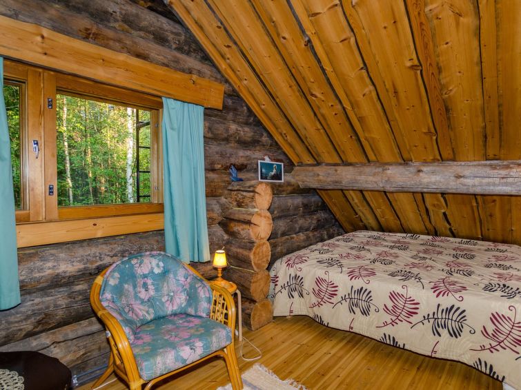 80 km north of Joensuu, L.Pielinen (871,2 km2) 20 m, shallow, sandy bottom, own shore and boat. Log cottage 1996, kitchen-living room with convertible sofa, sleeping alcove (no curtains) with convertible sofa, sleeping gallery with double bed and two separate beds, terrace and balcony. Separate sauna (wood heated stove), shover in the sauna (not separate washroom), dressing/fireplace room. The water of the shower gets warm, when the sauna is heated. The entrance to the sauna is through the veranda. Outstanding log cottage situated in the nature. No neighbors in sight. Children-friendly beach faces east. Pedal boat and canoe in guests disposal. Good possibilities for fishing, trolling, lure and net fishing licenses are included in the price. Outboard motor and water scooter can be hired separately. Possible to arrange fishing and picnic trips with the owner. Good possibilities for hunting: small game. Possibility to hire smoke sauna. Owner rents motor for boat 10 euro/day + fuel.