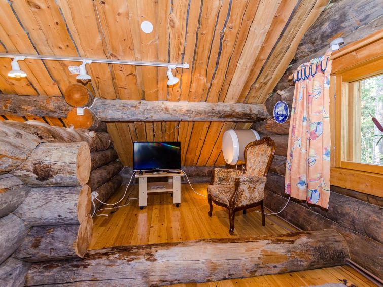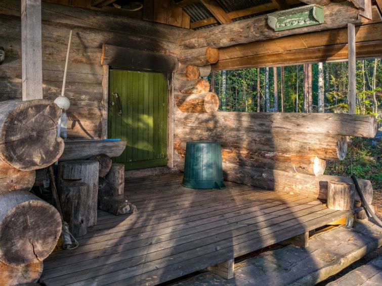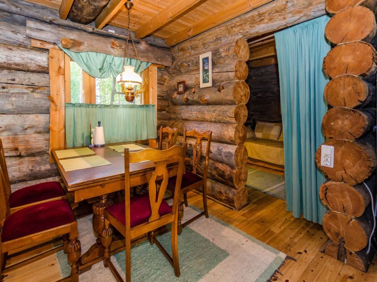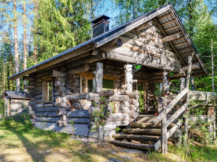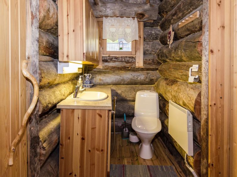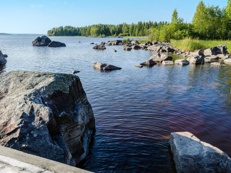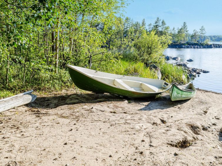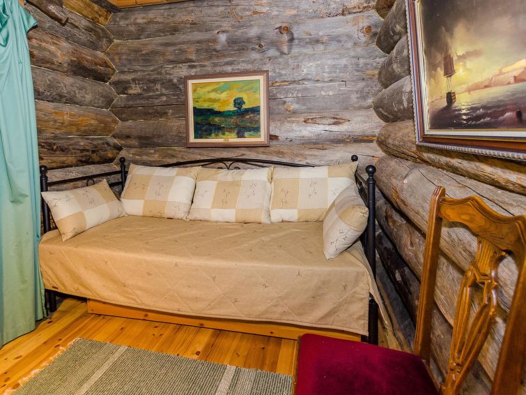 80 km north of Joensuu, L.Pielinen (871,2 km2) 25 m, shallow, sandy bottom, own shore and boat. Log cottage 1997, kitchen-living room, sleeping alcove (with curtain) with convertible sofa, sleeping gallery with double bed and convertible sofa, terrace and balcony. Separate sauna (wood heated stove), shower in the sauna (not separate washroom), dressing/fireplace room. The water of the shower gets warm, when the sauna is heated. Outstanding log cottage situated in the nature. Children-friendly beach faces eest. Pedal boat and canoe in guests disposal. Good possibilities for fishing, trolling, lure and net fishing licenses are included in the price. Outboard motor and water scooter can be hired separately. Possible to arrange fishing and picnic trips with the owner. Good possibilities for hunting: small game. Possibility to hire smoke sauna. Owner rents motor for boat 10 euro/day + fuel. Reservations start at 16.00 and end at 12.00 (also in weekend bookings).