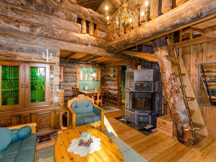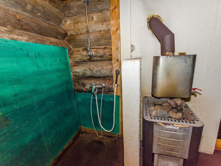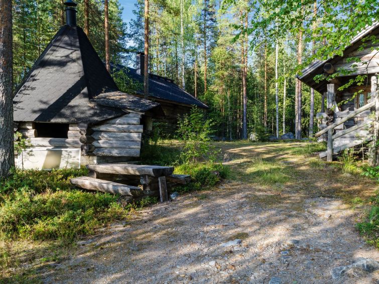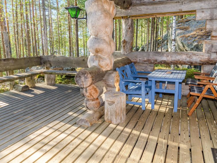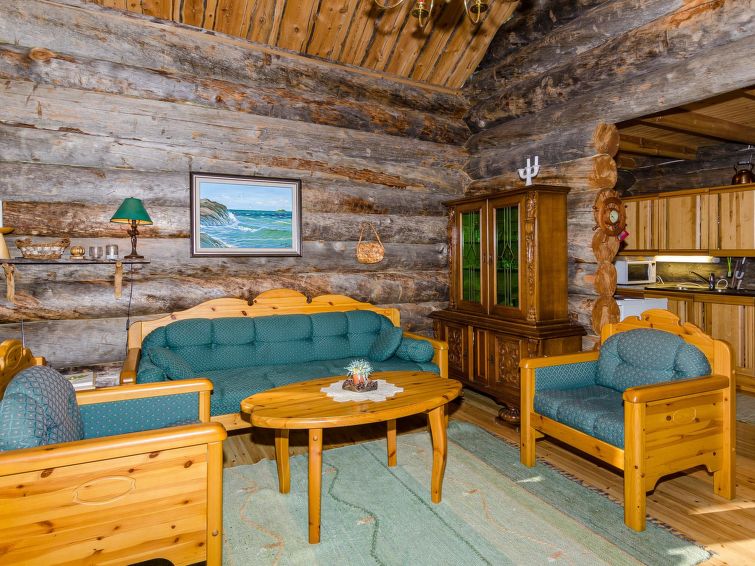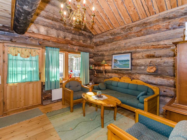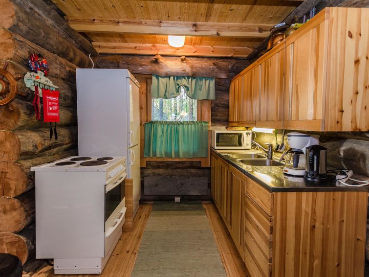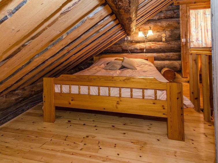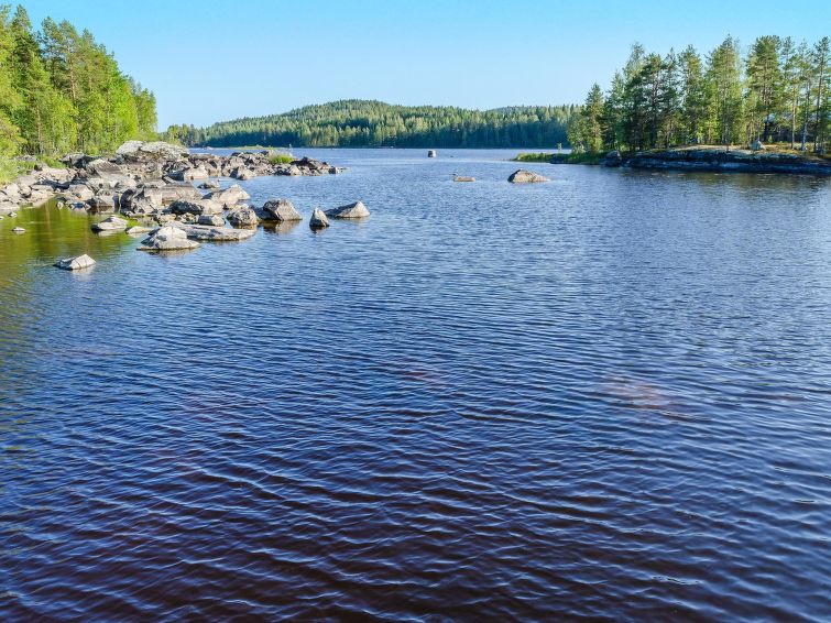 80 km north of Joensuu, L.Pielinen (871,2 km2) 25 m, shallow, sandy bottom, own shore and boat. Log cottage 1997, kitchen-living room, sleeping alcove (with curtain) with convertible sofa, sleeping gallery with double bed and convertible sofa, terrace and balcony. Separate sauna (wood heated stove), shower in the sauna (not separate washroom), dressing/fireplace room. The water of the shower gets warm, when the sauna is heated. Outstanding log cottage situated in the nature. Children-friendly beach faces eest. Pedal boat and canoe in guests disposal. Good possibilities for fishing, trolling, lure and net fishing licenses are included in the price. Outboard motor and water scooter can be hired separately. Possible to arrange fishing and picnic trips with the owner. Good possibilities for hunting: small game. Possibility to hire smoke sauna. Owner rents motor for boat 10 euro/day + fuel. Reservations start at 16.00 and end at 12.00 (also in weekend bookings).