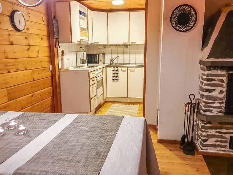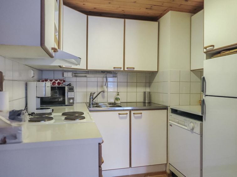 170 km to the north from Rovaniemi, in the tourist center of Levi, in Isorakka area. Apartment in the semi-detached house, built in 1990.