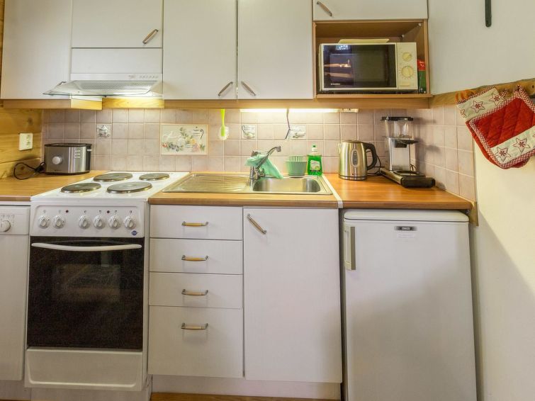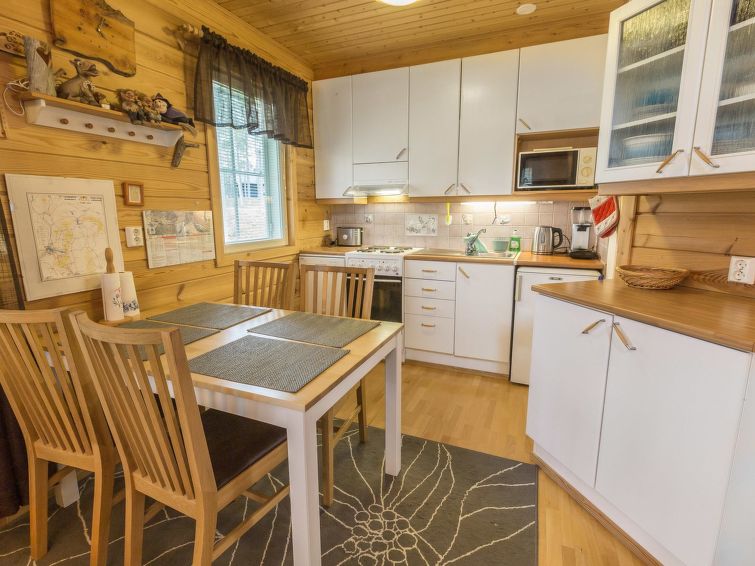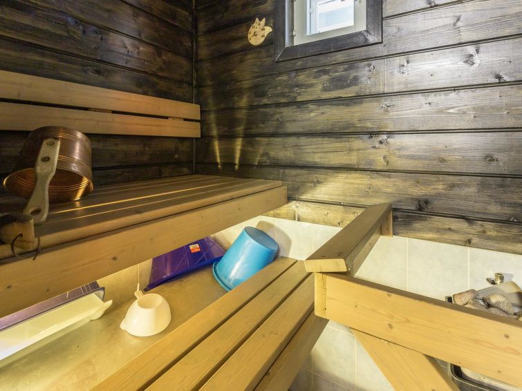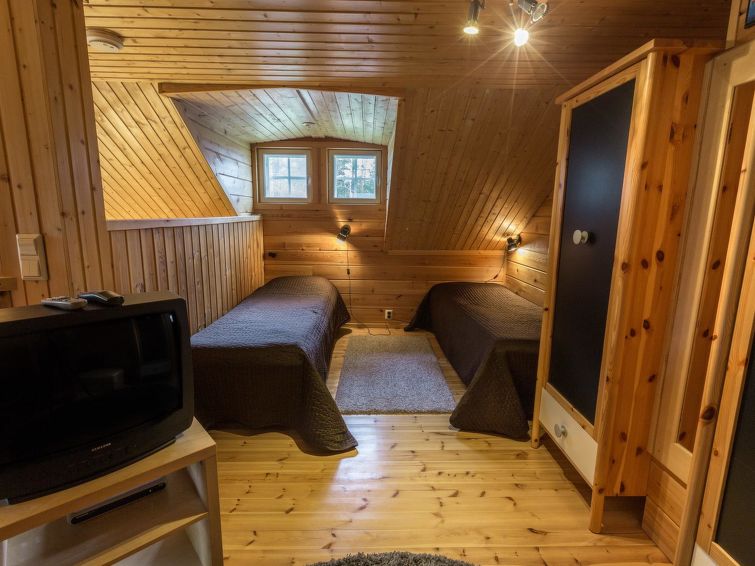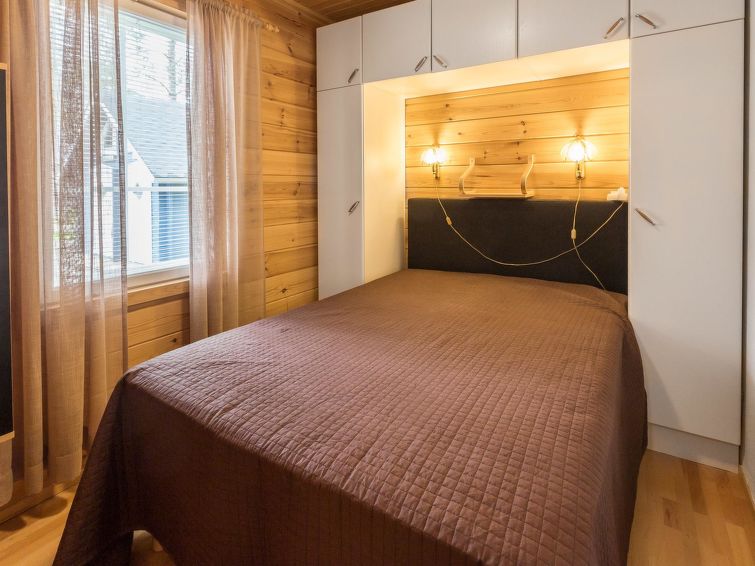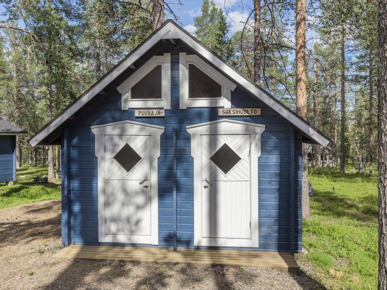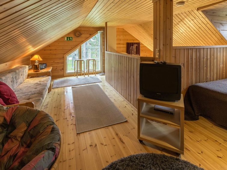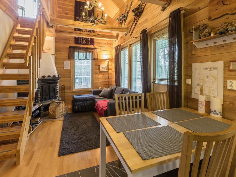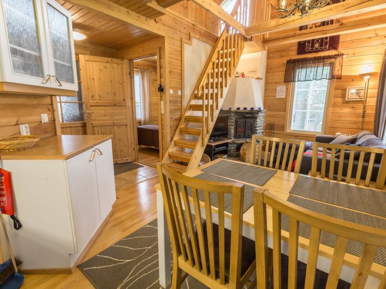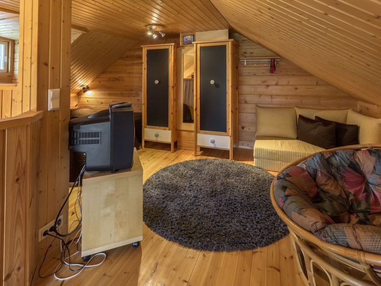 40 km north of Kolari, lake Äkäslompolo 1,8 km, swimming beach 3,3 km. Log semi-detached house apartment 2002. Livingroom/kitchen, one bedroom with a double bed (140 cm), loft (25 m2) with 2 separate beds and a bedsofa, sauna (electric), shower/toilet. Shared ski maintenance room for apartments A and B. Homely log semi-detached house apartment in the Äkäslompolo village Kaulavaara area (kiirunantie 6). Located in a peaceful and tidy cottage area. In addition: iron. No pets allowed. Prices include final cleaning, bedlinen available for rent.